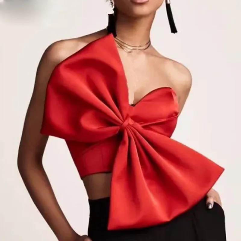 Special Offer Elegante verano grandes arcos Crop tapas Sexy de hombro con cremallera trasera Rojo Negro camiseta Casual mujeres Fiesta Club recortado tanques Discount 5% Today!
