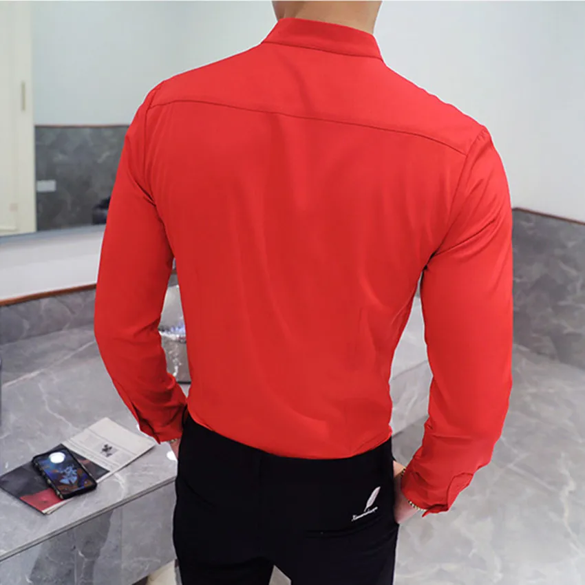 Special Offer Camisas de vestir de manga larga de cuello alto de Otoño Invierno para hombre camisa Formal de boda de negocios de hombre joven Delgado blanco y negro Discount 50% Today!