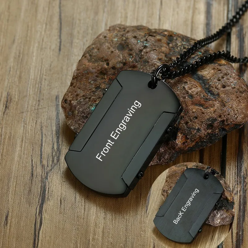 Special Offer COLLAR COLGANTE con etiqueta de perro de acero inoxidable grabable para hombres en joyería negra para hombres con cadena de 20 pulgadas Discount 50% Today!