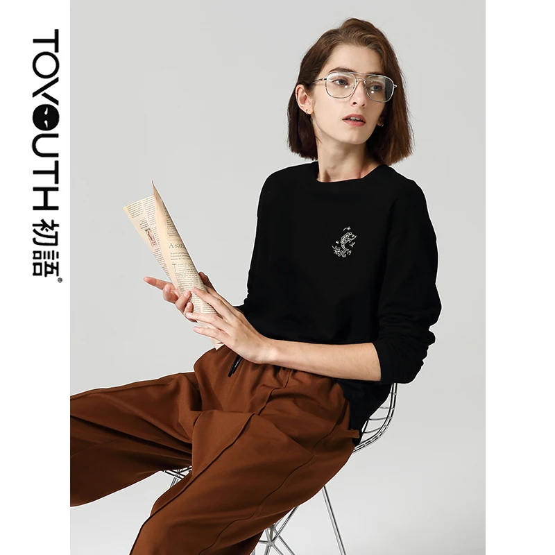 Special Offer Toyouth Casual cuello redondo de manga larga mujeres camisetas sueltas peces impresos otoño negro Discount 57% Today!