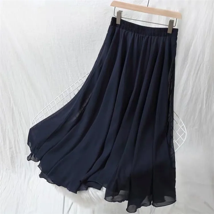 Special Offer Primavera otoño moda mujer de alta cintura plisada falda de talla grande señora negro Rosa rojo amarillo larga falda maxi de raso M 6XL 7XL Discount 14% Today!