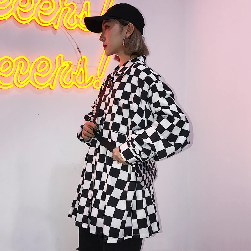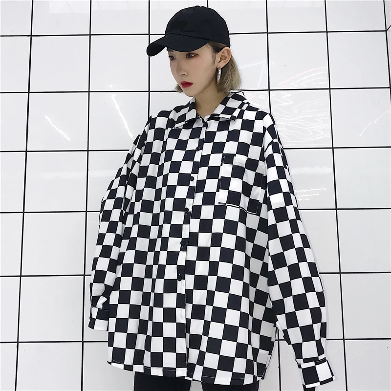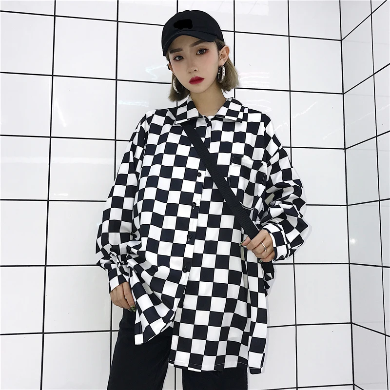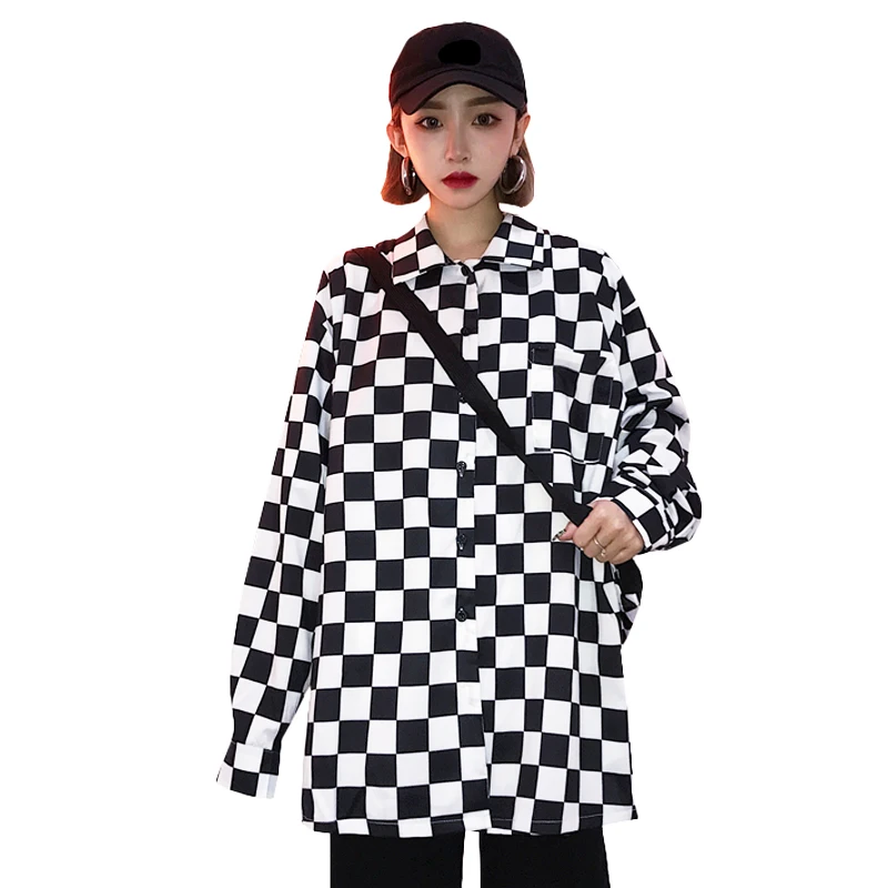 Special Offer 2019 nuevas camisas de verano para mujer Harajuku camisa blanca y negra suelta de manga larga Retro de Color a juego camisa a cuadros #2108 Discount 20% Today!