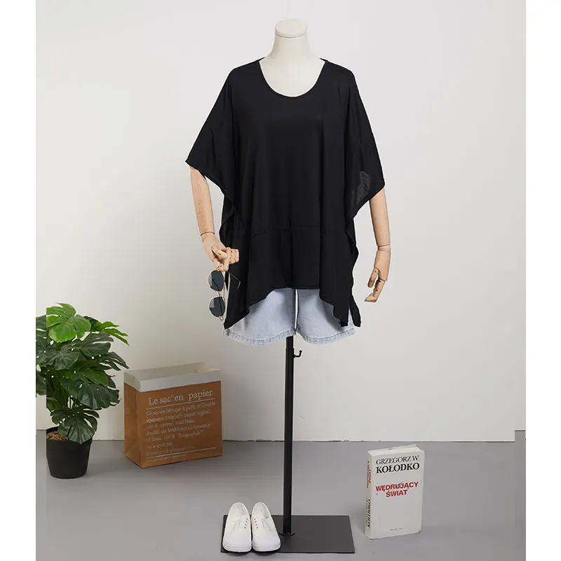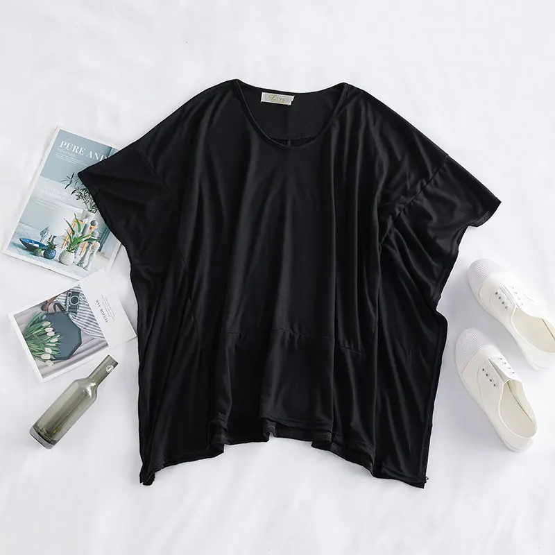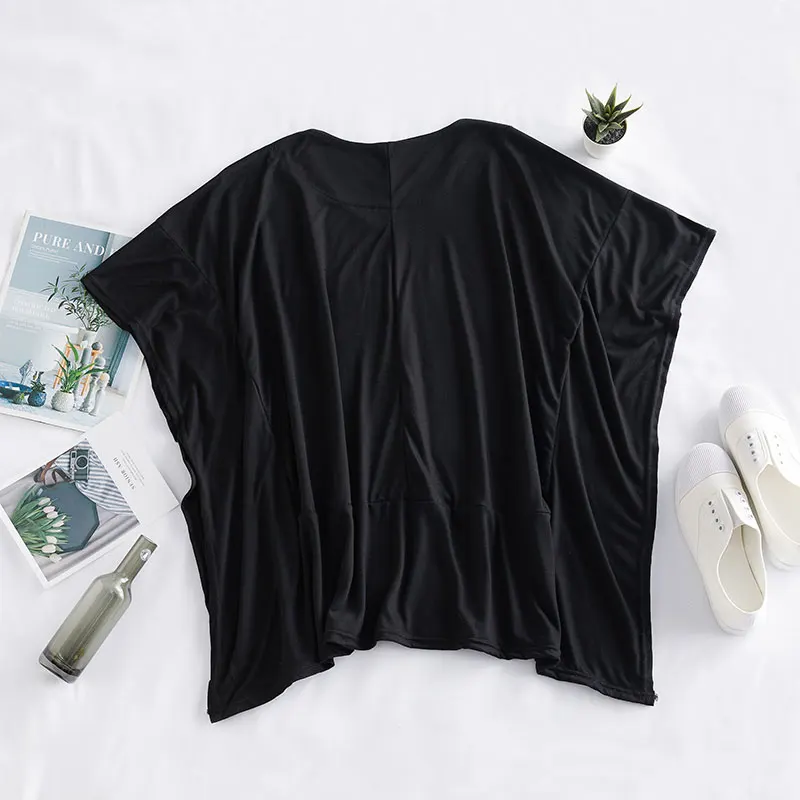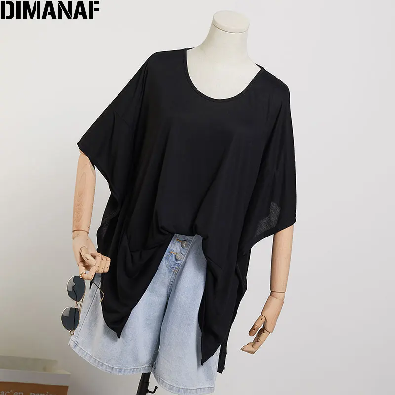 Special Offer DIMANAF 2020 de talla grande para mujer Camiseta de algodón con manga de murciélago y camisetas estilo de verano para mujer Patchwork sólido negro con cuello en V camisetas sueltas Discount 30% Today!