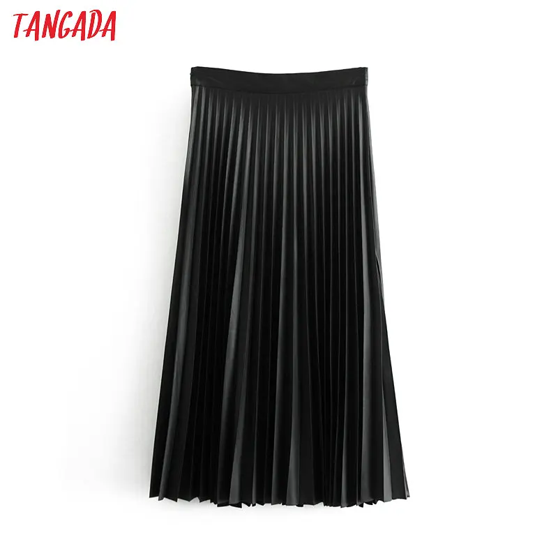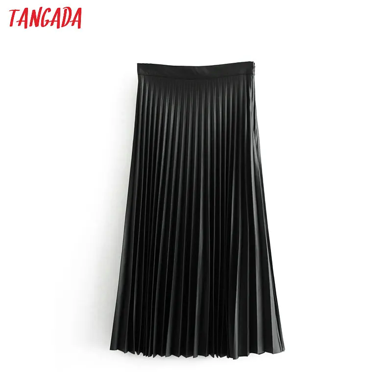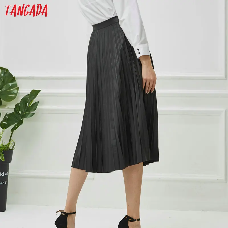 Special Offer Falda midi plisada básica negra para mujer Tangada falda vintage con cremallera lateral para mujer faldas elegantes largas hasta la pantorrilla 6A68 Discount 30% Today!