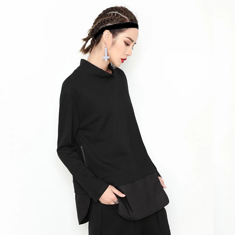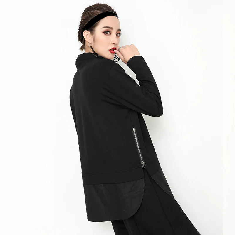 Special Offer XITAO Patchwork cremallera negro camiseta para mujeres de manga larga talla grande cuello de pie Tide Street Style tapas ropa coreana gmy2355 Discount 30% Today!