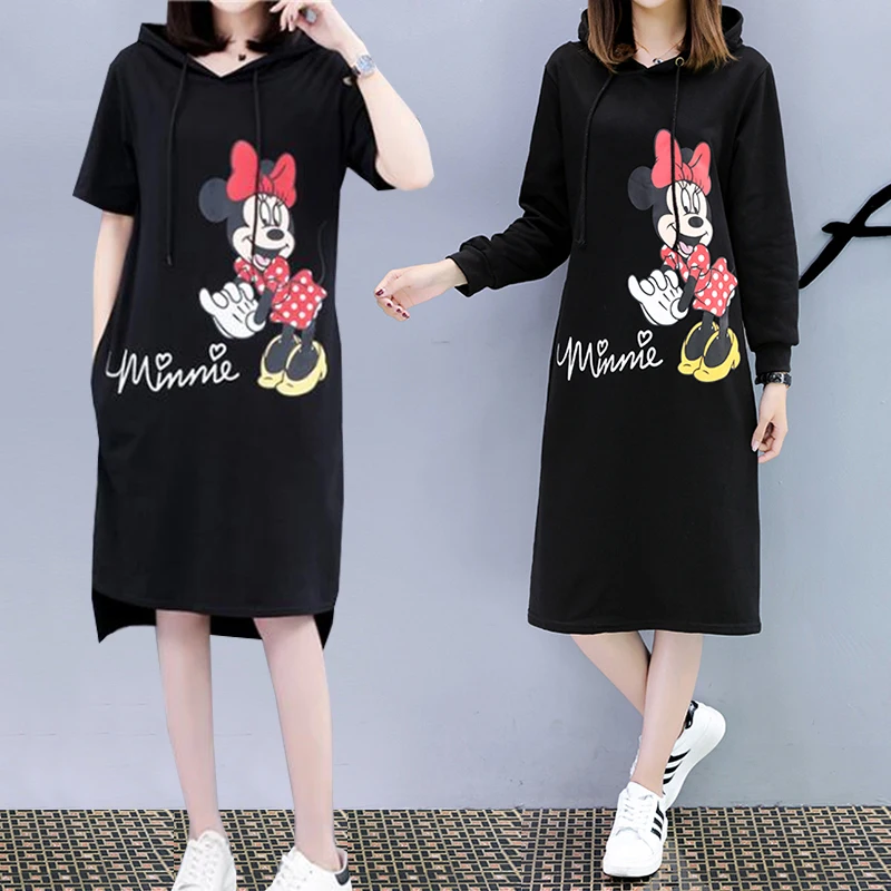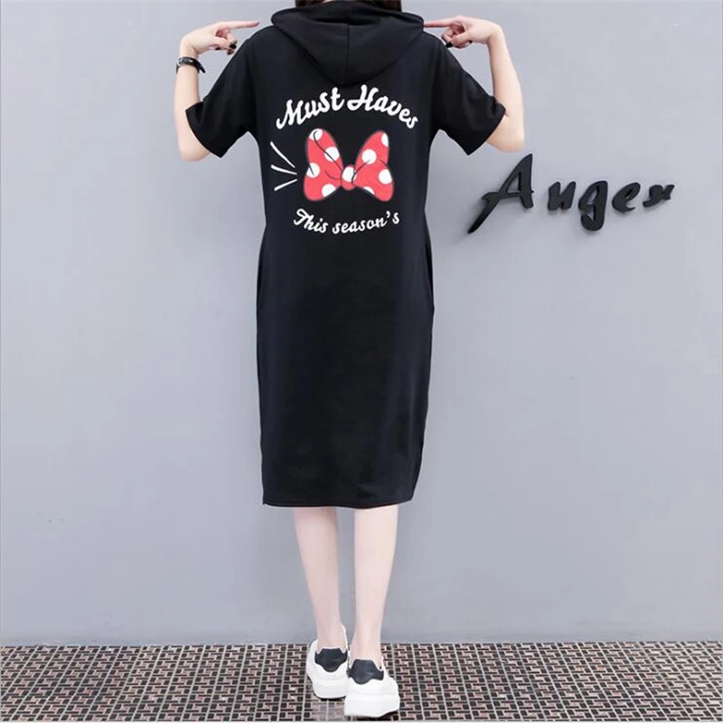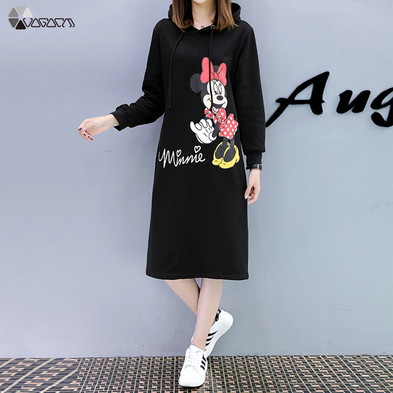 Special Offer 2019 vestidos de verano para mujer moda suelta Casual negro Otoño de talla grande vestido con capucha M 4XL con bolsillo Discount 35% Today!