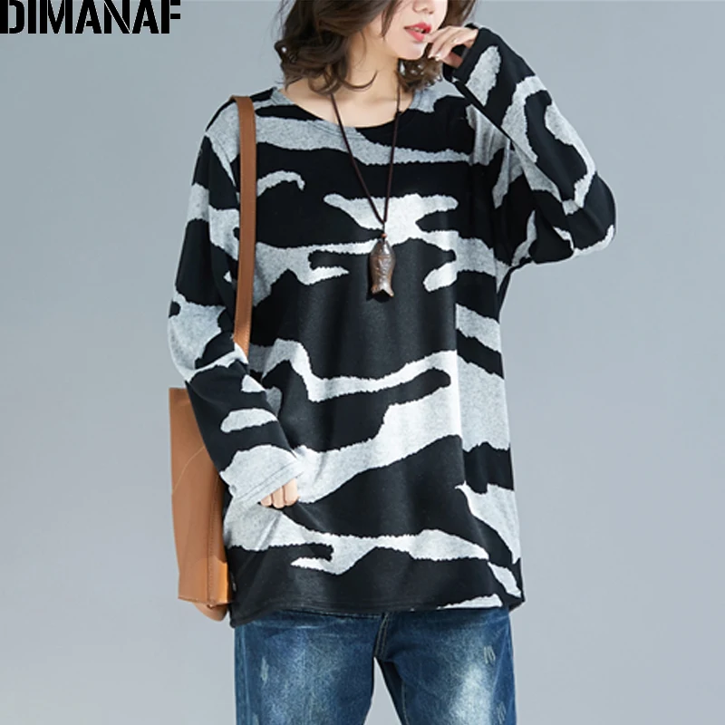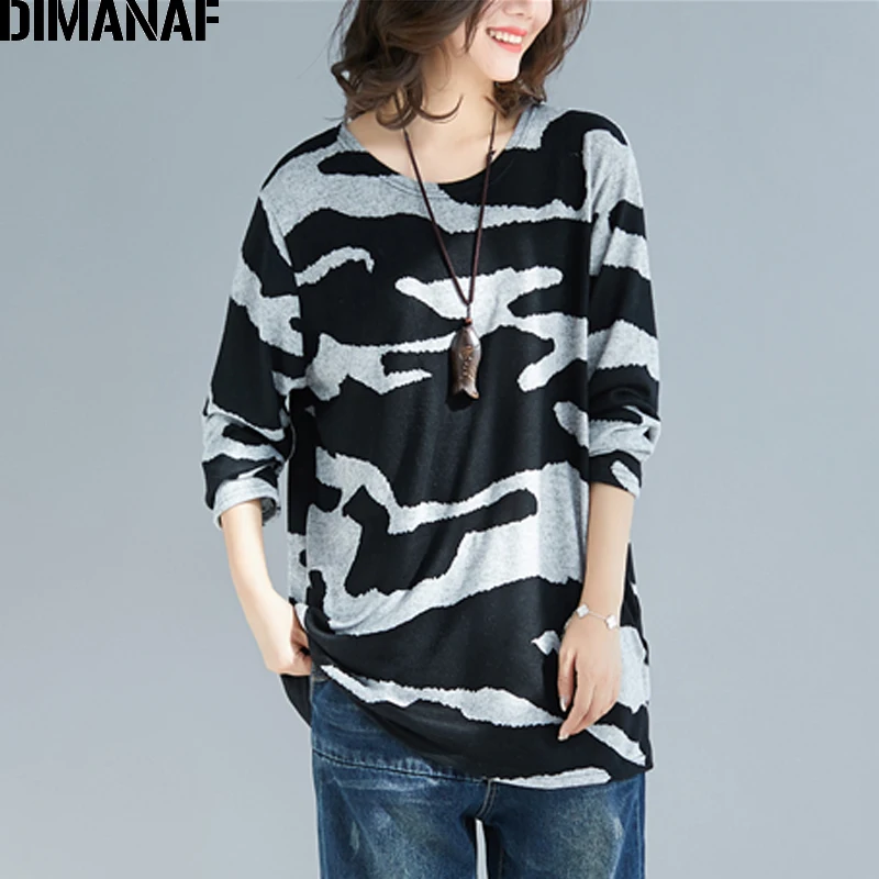 Special Offer DIMANAF otoño camisetas de talla grande para mujer algodón suelta Casual para mujer blusas túnica de manga larga Camisetas estampado negro ropa elástica Discount 36% Today!