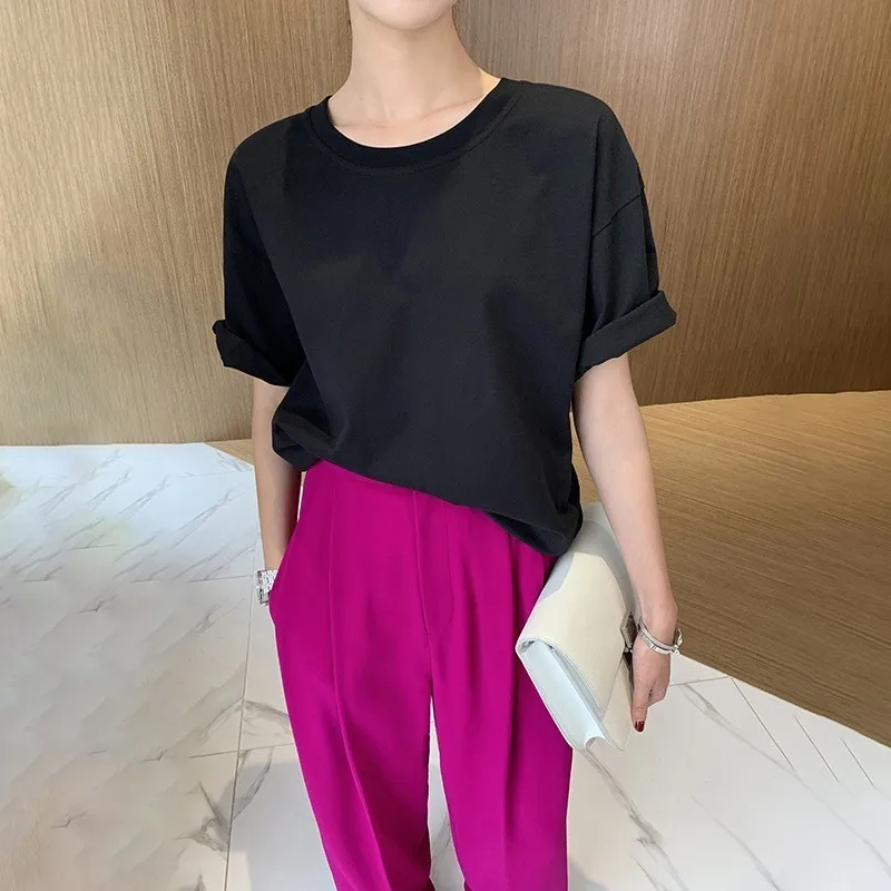 Special Offer TWOTWINSTYLE camiseta negra de verano para mujeres cuello redondo manga corta Tallas grandes ropa de moda femenina 2019 Casual nueva marea Discount 39% Today!