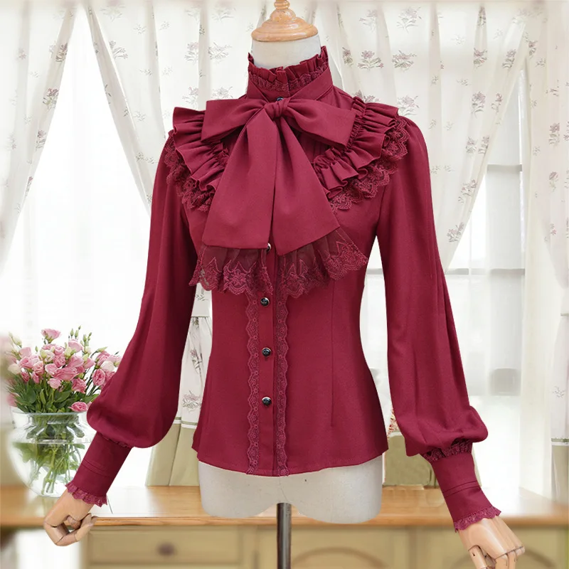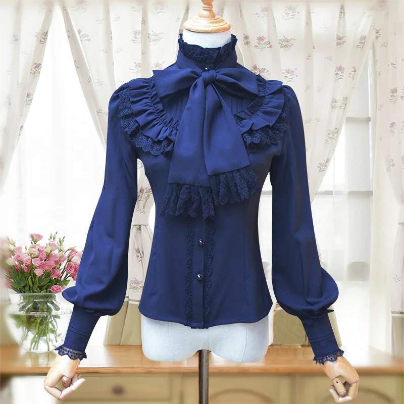 Special Offer Blusa de Lolita Vintage para mujer gótica blusa de volantes de chifón manga larga Blusas negro Blanco azul marino Borgoña Discount 45% Today!