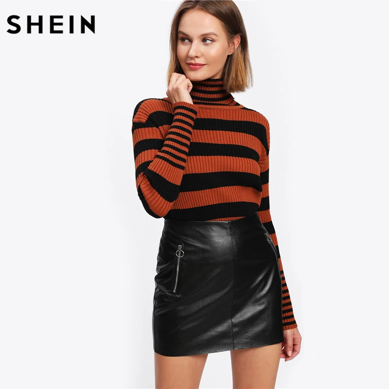 Special Offer SHEIN Highstreet mujer Sexy Falda corta moda mujer ropa 2018 negro alta cintura o ring Zip detalle falda de cuero de imitación Discount 46% Today!