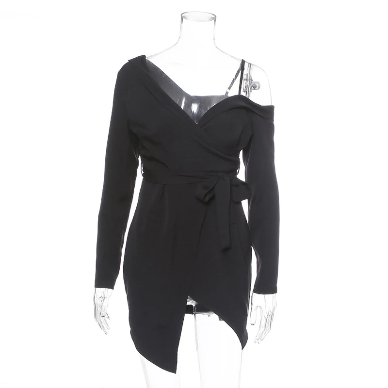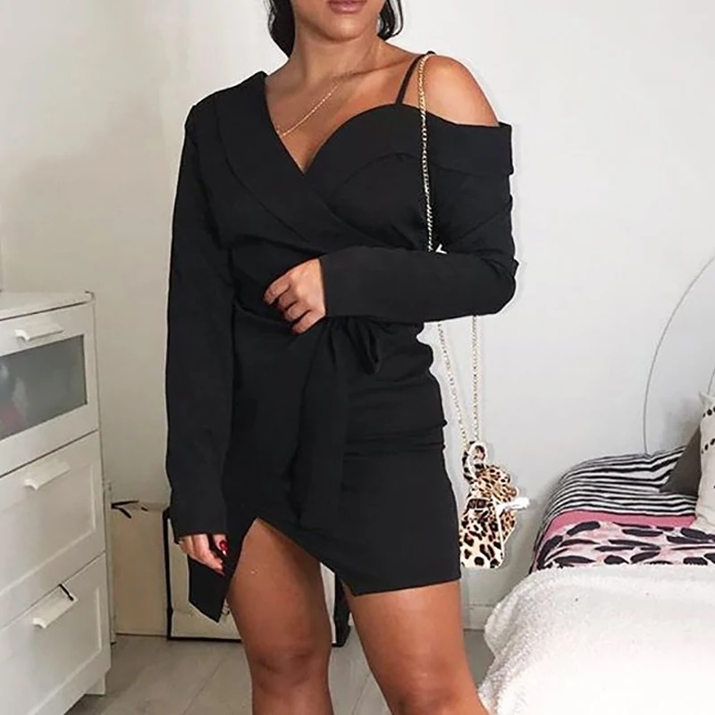 Special Offer Vestido de fiesta de oficina Rojo Negro para mujer Mini traje de mujer elegante de hombro con cuello en V ceñido al cuerpo Sashes vestido Sexy ropa de Club sólido GV749 Discount 5% Today!