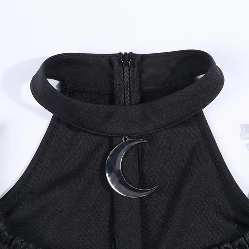 Special Offer Verano gótico Chic elegante Harajuku negro mujeres Mini vestidos Sexy Club Punk malla Luna encaje sin tirantes Mujer Goth cremallera vestido Discount 50% Today!
