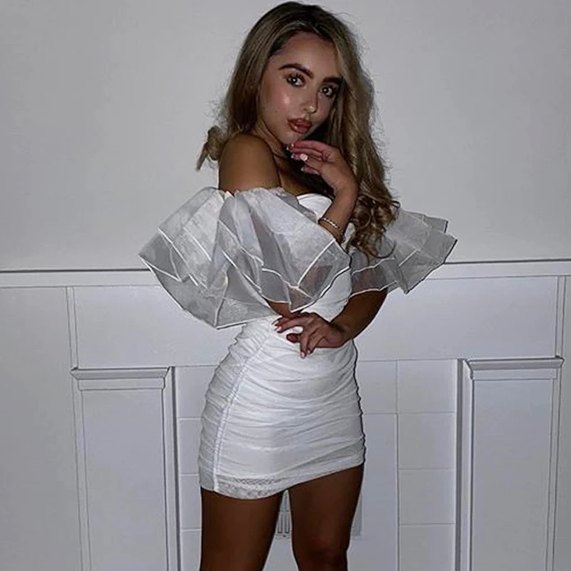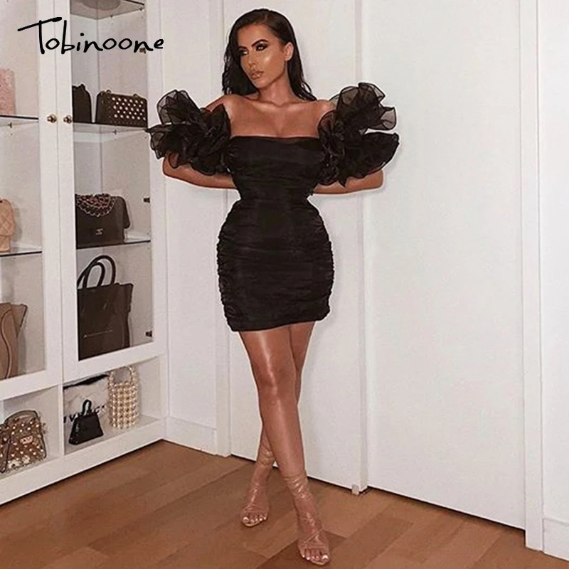 Special Offer Tobinoone Ruffle off shoulder club sexy vestido Vintage ajustado negro otoño vestido 2019 corto mini vestido de fiesta vestidos de fiesta Discount 6% Today!