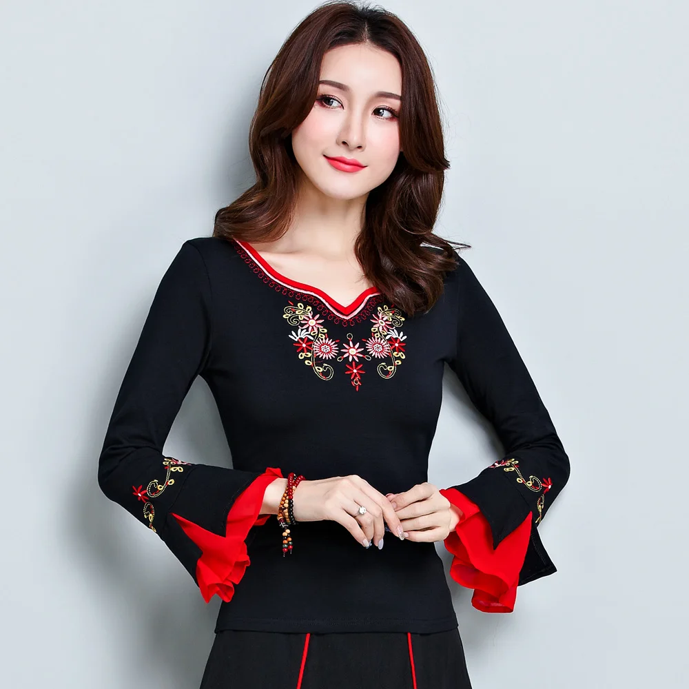 Special Offer KYQIAO Original camisa mujer pullover mujer otoño México estilo hippie vintage manga larga acampanada bordado camisa negra Discount 0% Today!