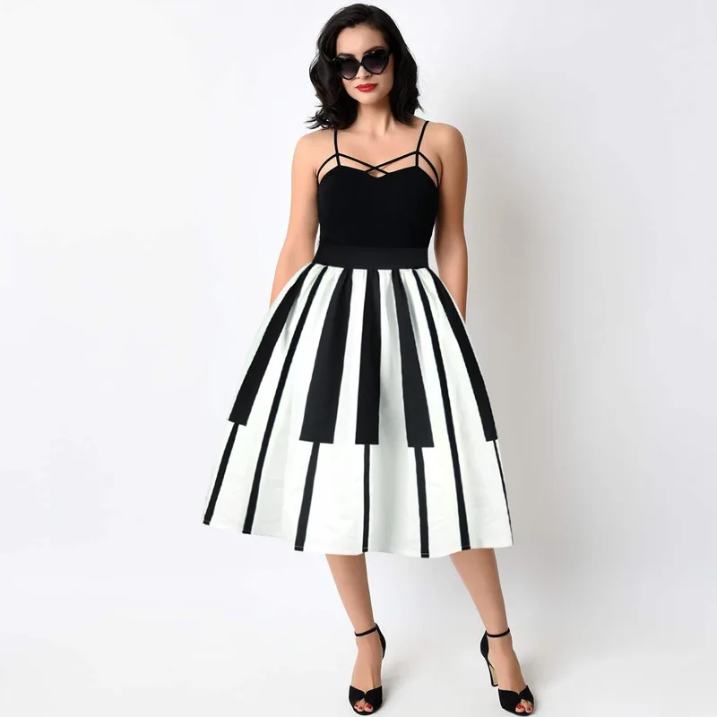 Special Offer Moda 3D imprimir falda negra mujer teclado Piano patrón falda por encima de la rodilla vestido de bola Grace Patchwork faldas para mujer nuevo Discount 0% Today!