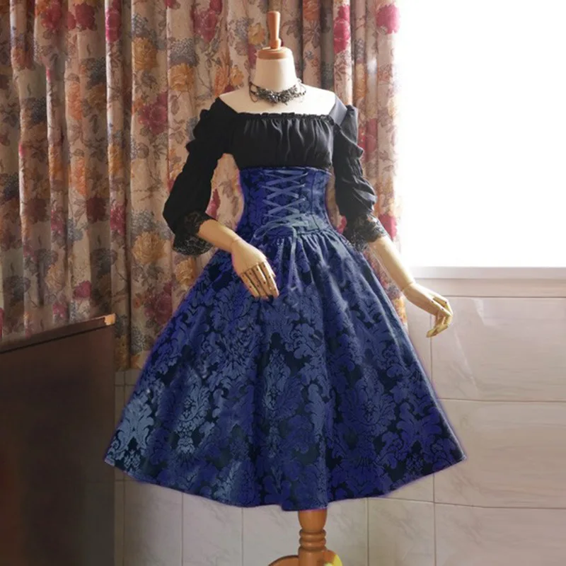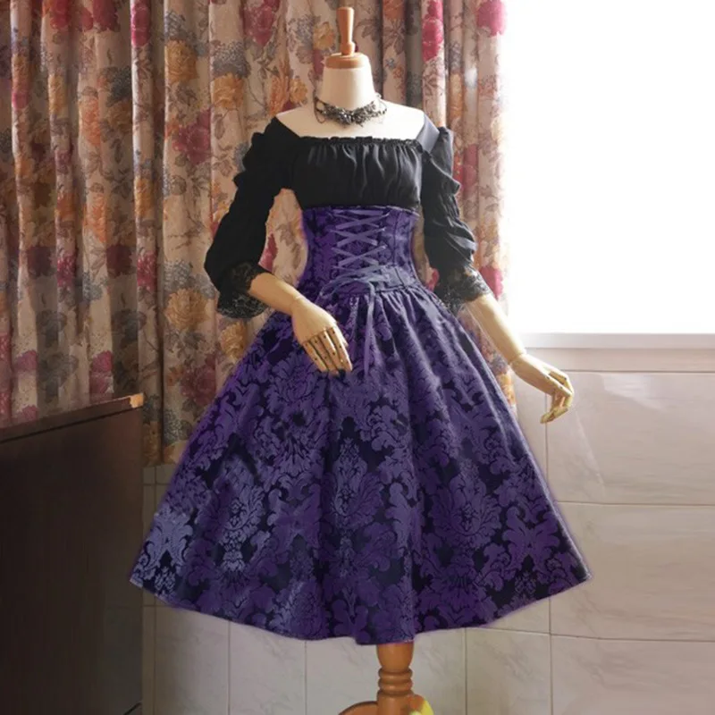 Special Offer Vestidos de dos piezas falsos Lolita estampado de alta cintura de manga larga de encaje victoriano gótico negro rojo gris traje de mujer de talla grande 5XL Discount 0% Today!
