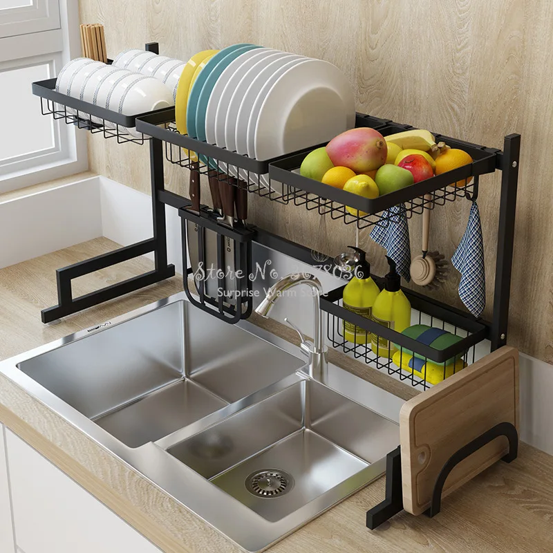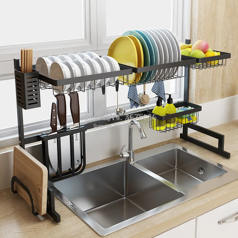 Special Offer 2 capas de estantes de acero inoxidable multiusos rejilla para escurrir para fregadero de cocina estante de secado de fregadero negro Discount 18% Today!