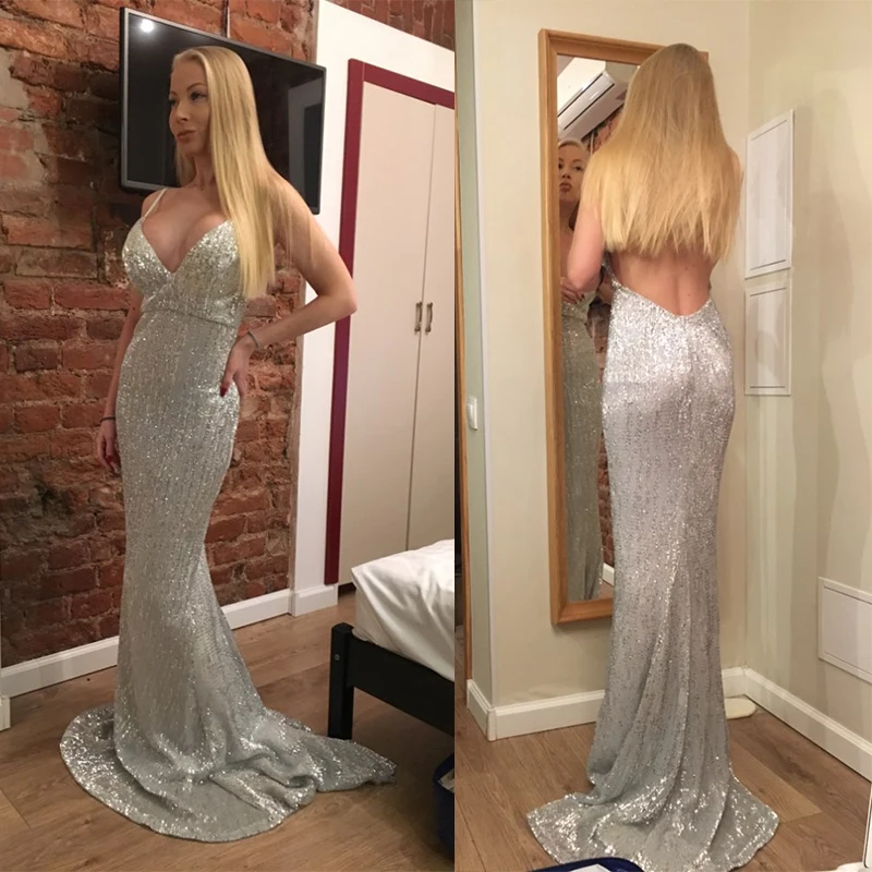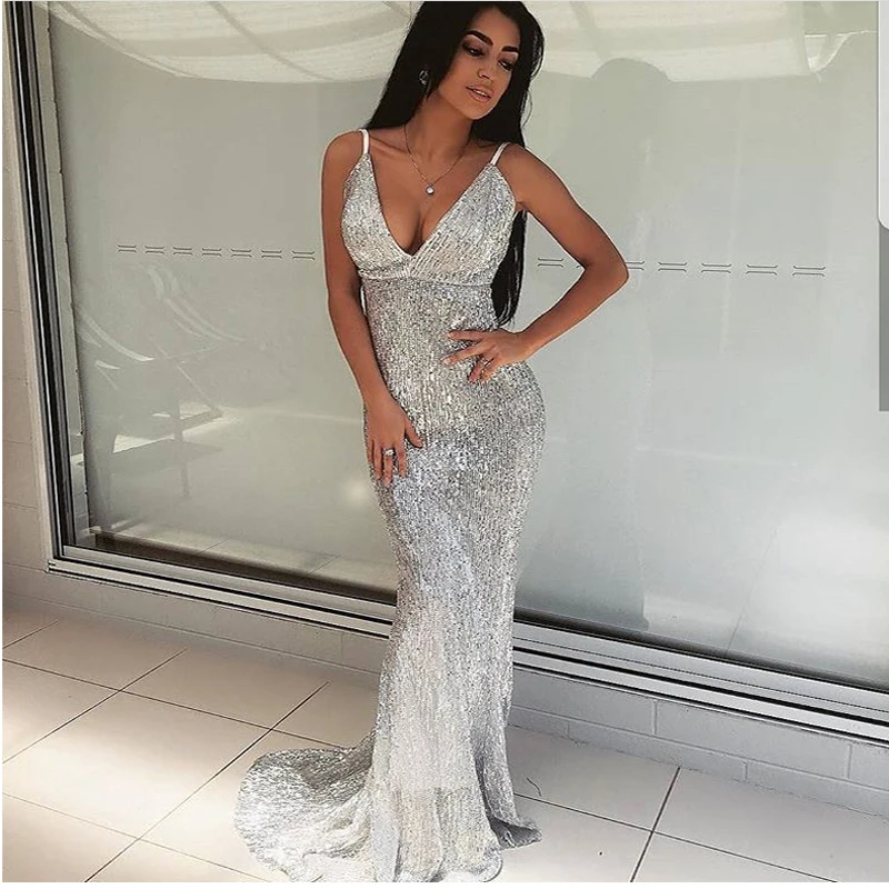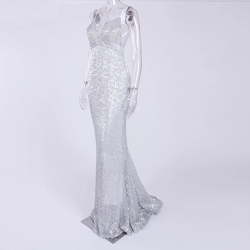 Special Offer Sexy vestido Maxi de lentejuelas de plata de estiramiento sirena hasta el suelo para fiesta vestido acolchado cuello en V sin espalda vestido verde esmeralda Rojo Dorado negro Discount 20% Today!