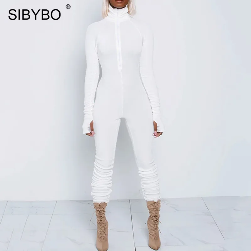 Special Offer SIBYBO Spring Turtleneck Skinny Casual Jumpsuit mujer manga larga cremallera frontal Sport Wear mujer monos negro para mujer Discount 32% Today!