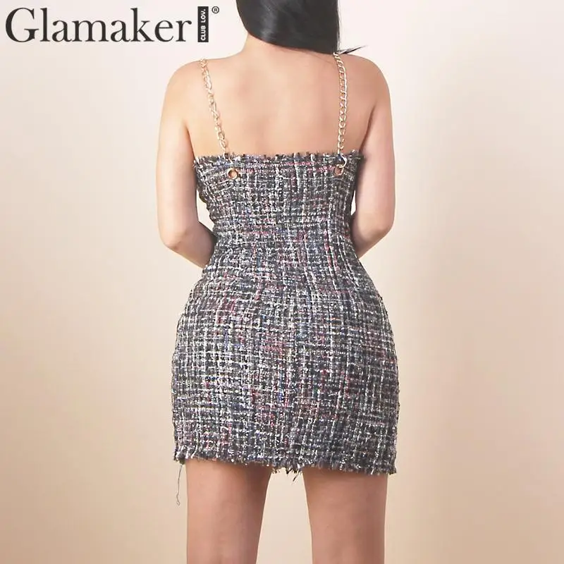 Special Offer Glamaker Tweed negro corto para Fiesta club Vestido Mujer otoño sin mangas elegante ajustado vestido femenino cuello en v sexy mini vestido de invierno Discount 46% Today!