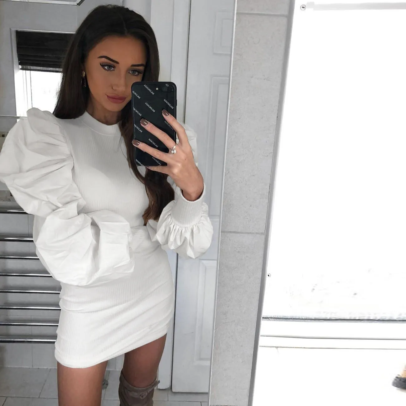 Special Offer Vestido de punto de manga larga Vintage de rapescritor para mujer 2019 cuello alto elegante Delgado lápiz negro Vestido corto Vestidos otoño Discount 47% Today!