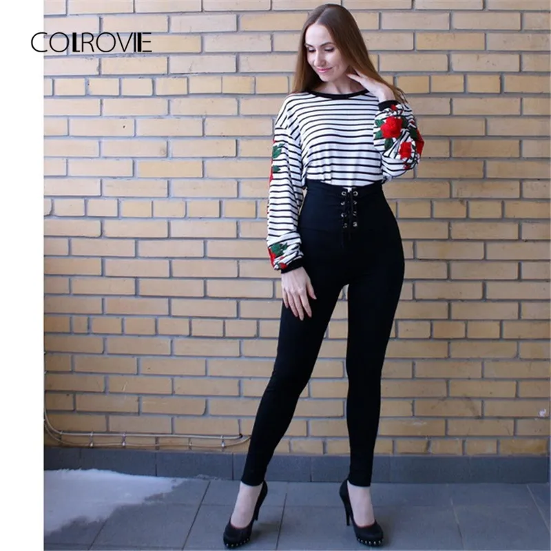 Special Offer Pantalones ajustados de cintura alta de primavera collovie negro Empire Eyelet Lace Up Sexy Leggings mujeres elegantes Pantalones deportivos Discount 48% Today!