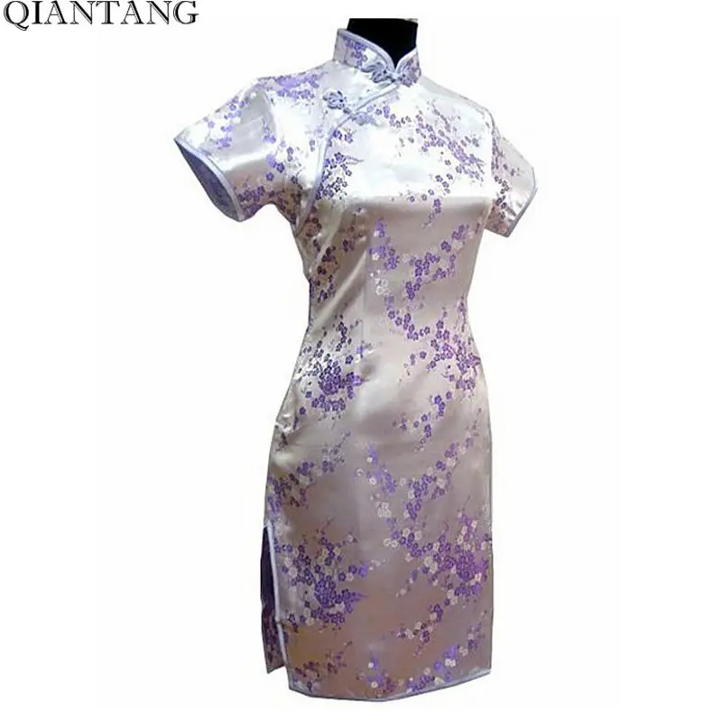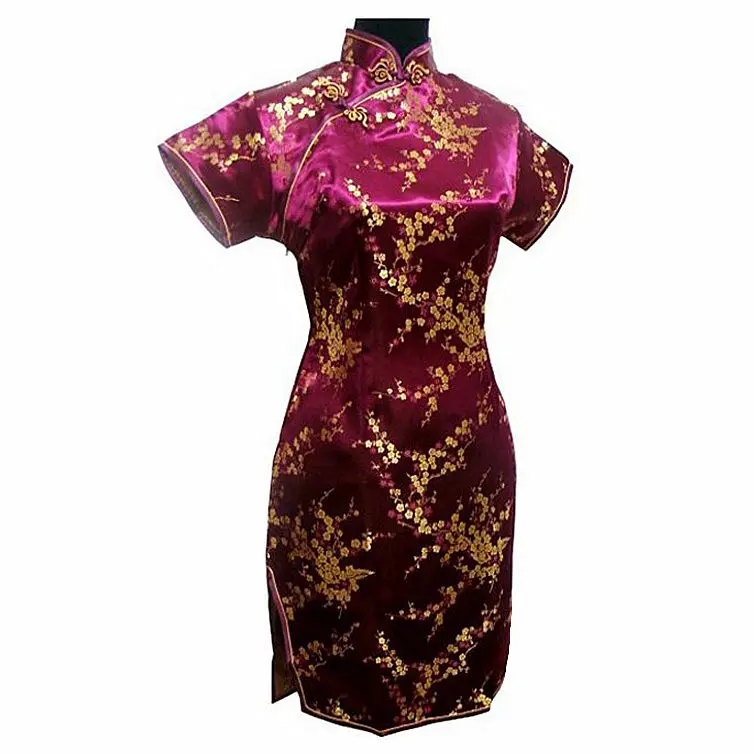 Special Offer Negro chino estilo corto Cheongsam tradicional mujeres satén Mini Qipao Vestido ropa de talla grande S 6XL Discount 51% Today!