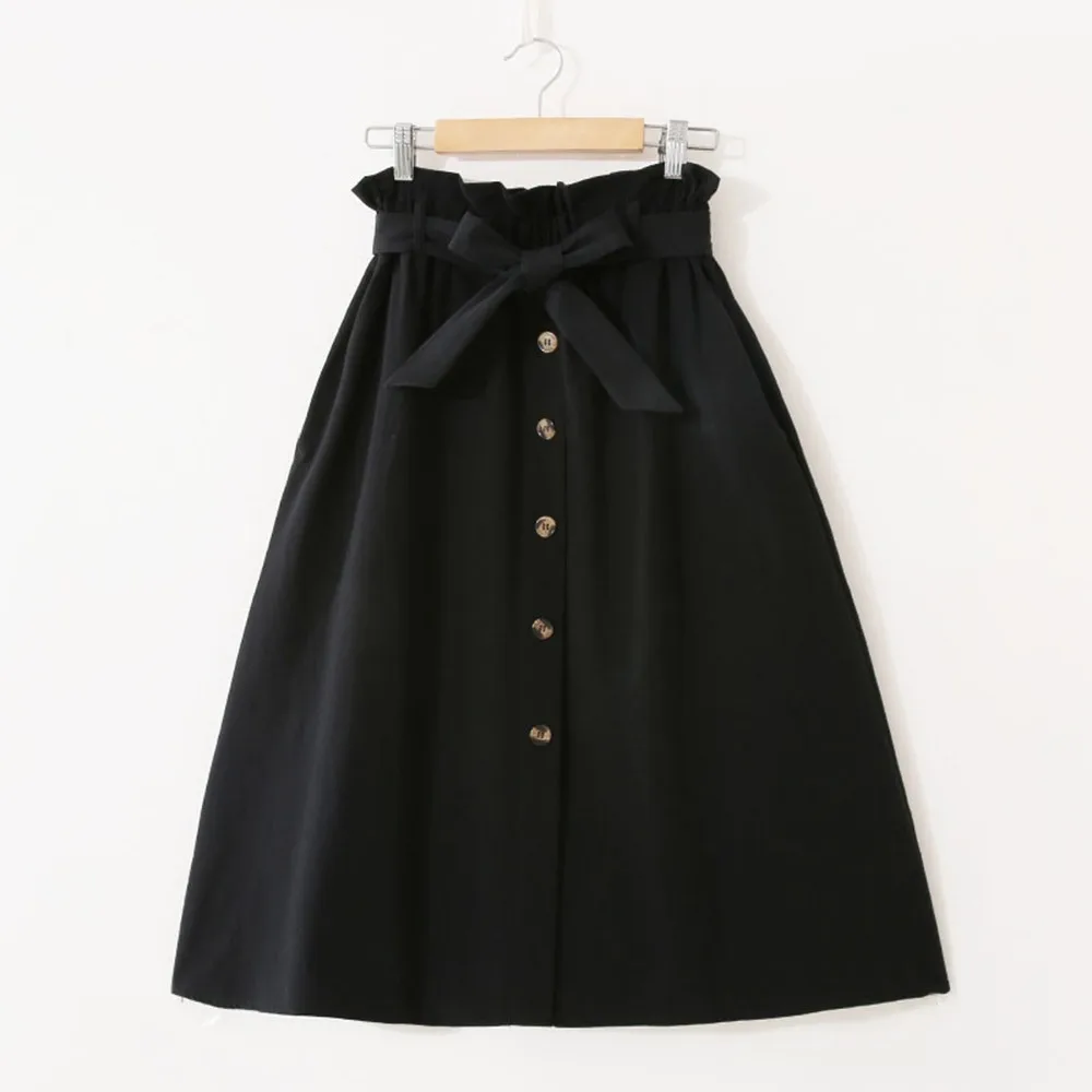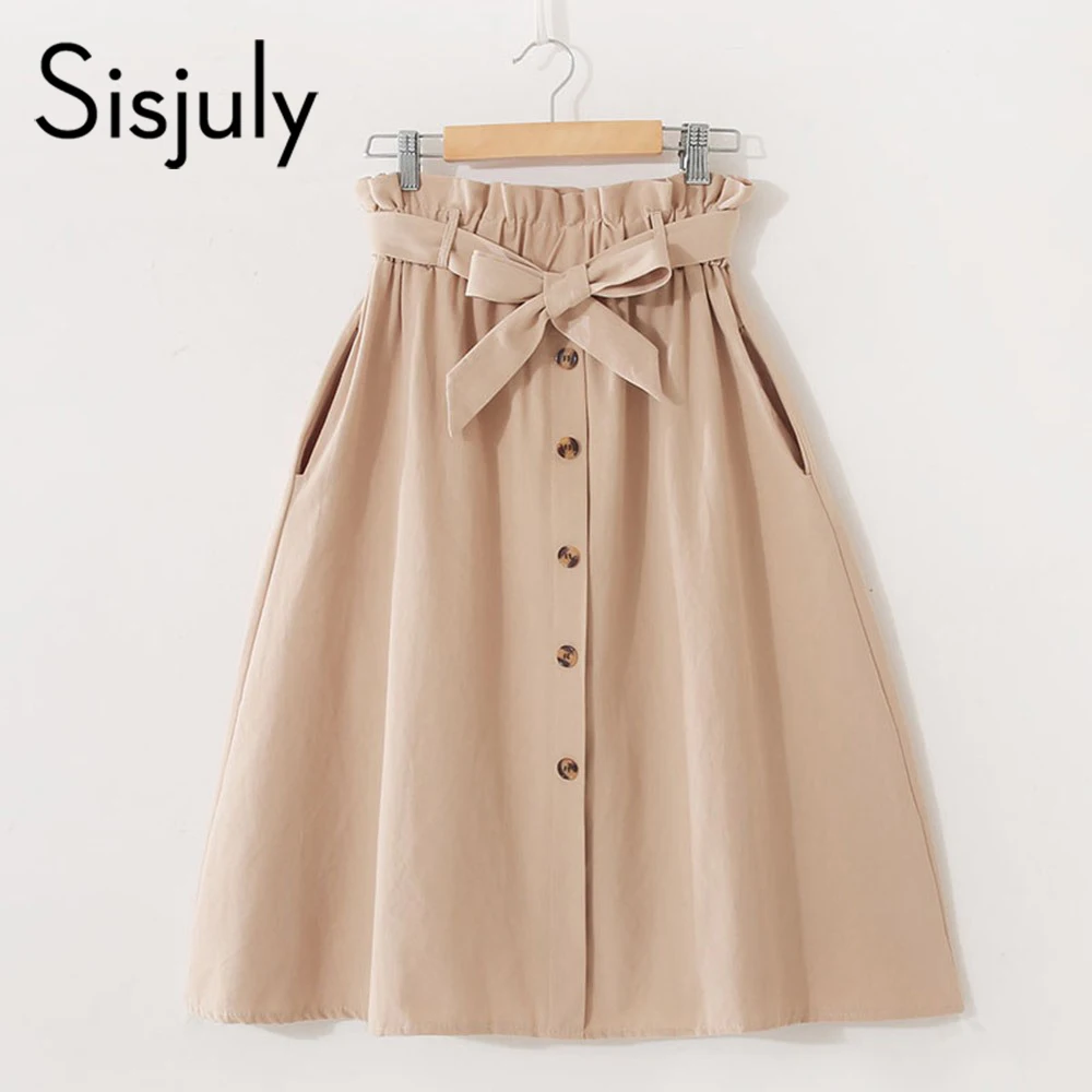 Special Offer Falda sencilla fresca Vintage Sisjuly para mujer plisada cintura alta botón de la cintura para chica Casual negro sólido dulce una línea faldas cortas 2019 Discount 53% Today!