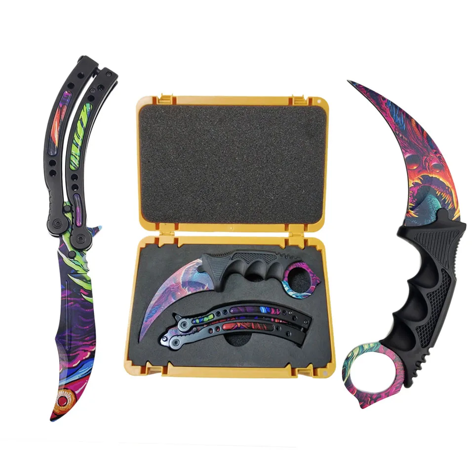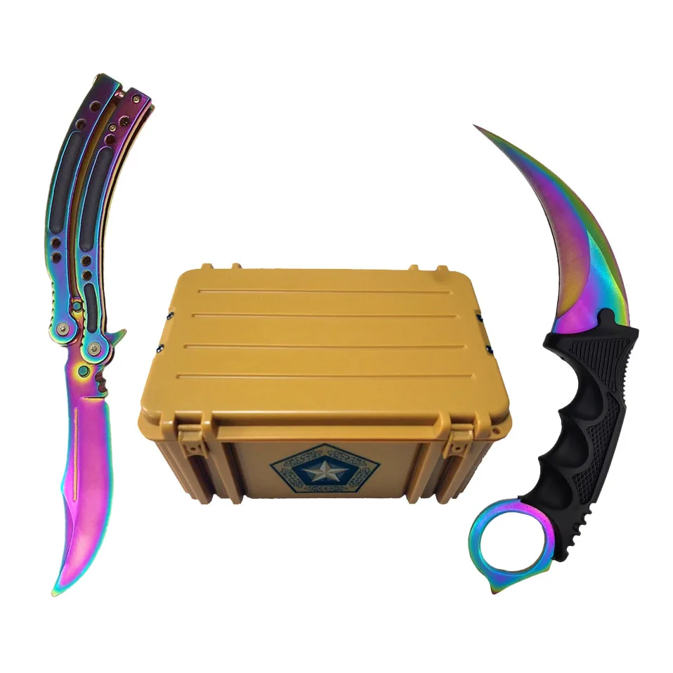 Special Offer Juego de cuchillos de juego Swayboo Csgo Karambit + cuchillo de entrenamiento + bolsa de Nylon + destornillador + caja mate sin filo recipiente de plástico estuche de armas Discount 12% Today!