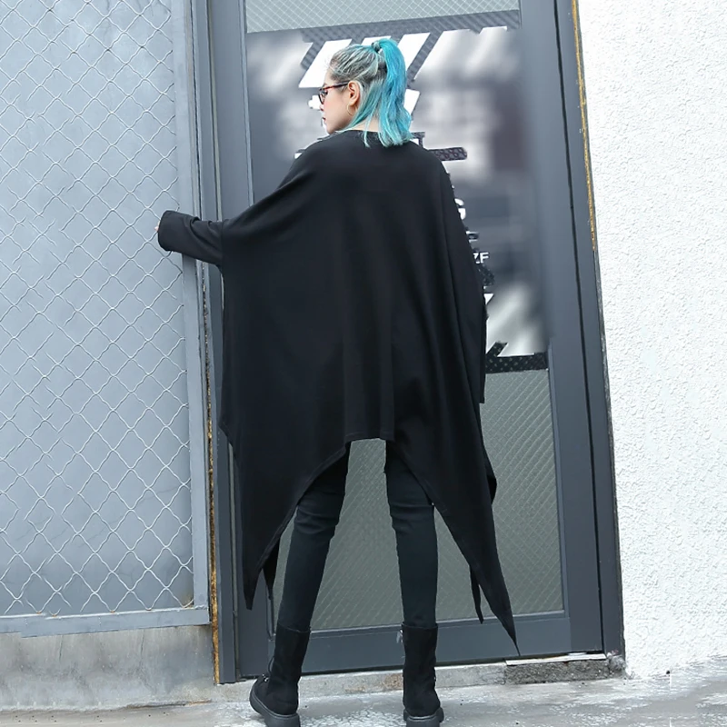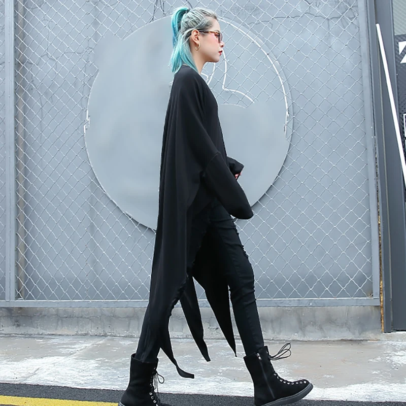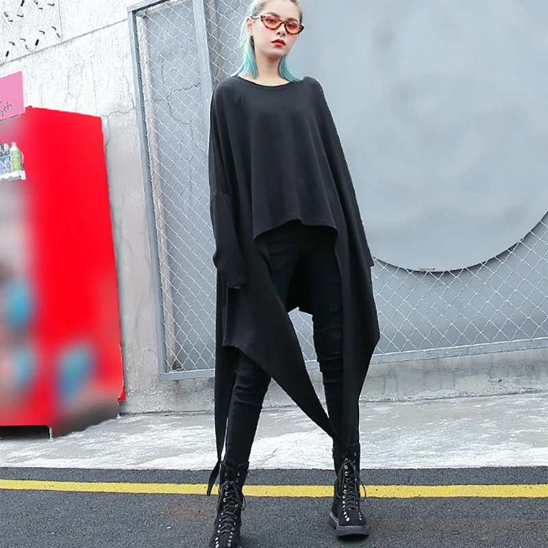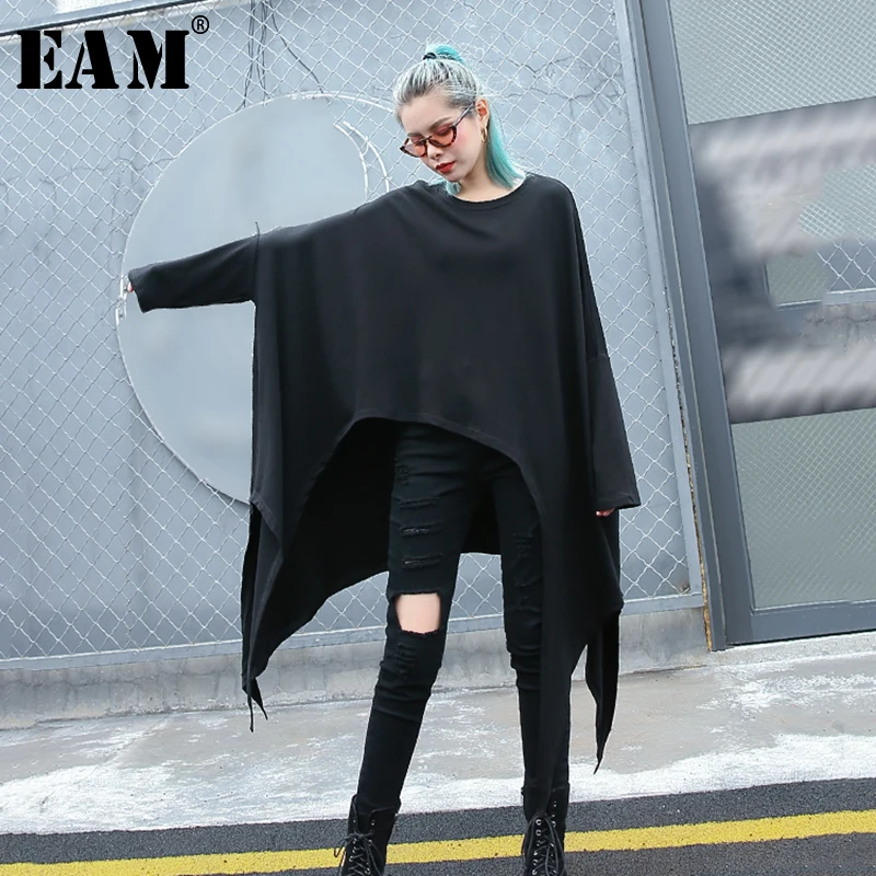 Special Offer [EAM] 2020 nuevo Otoño Invierno cuello redondo manga larga negro suelto Irregular corte Hem gran tamaño camiseta mujer moda marea JH790 Discount 17% Today!