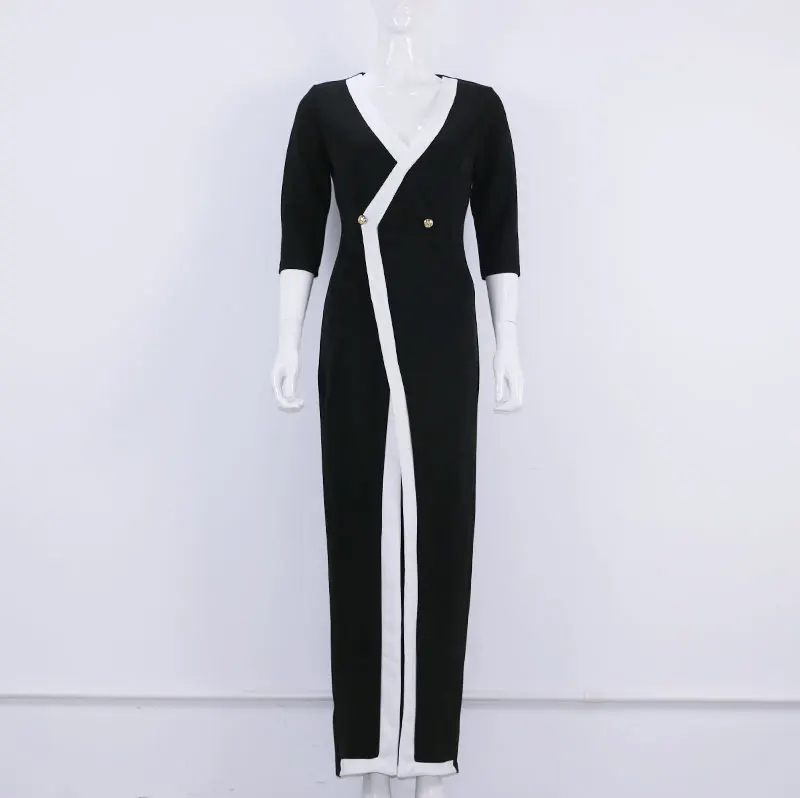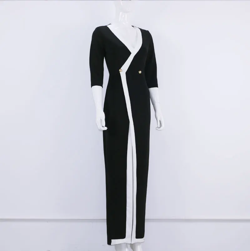 Special Offer 2018 Venta caliente negro mujeres sexy vestido con cuello en V manga larga hasta el suelo vestidos de fiesta vestido de mujer Discount 25% Today!
