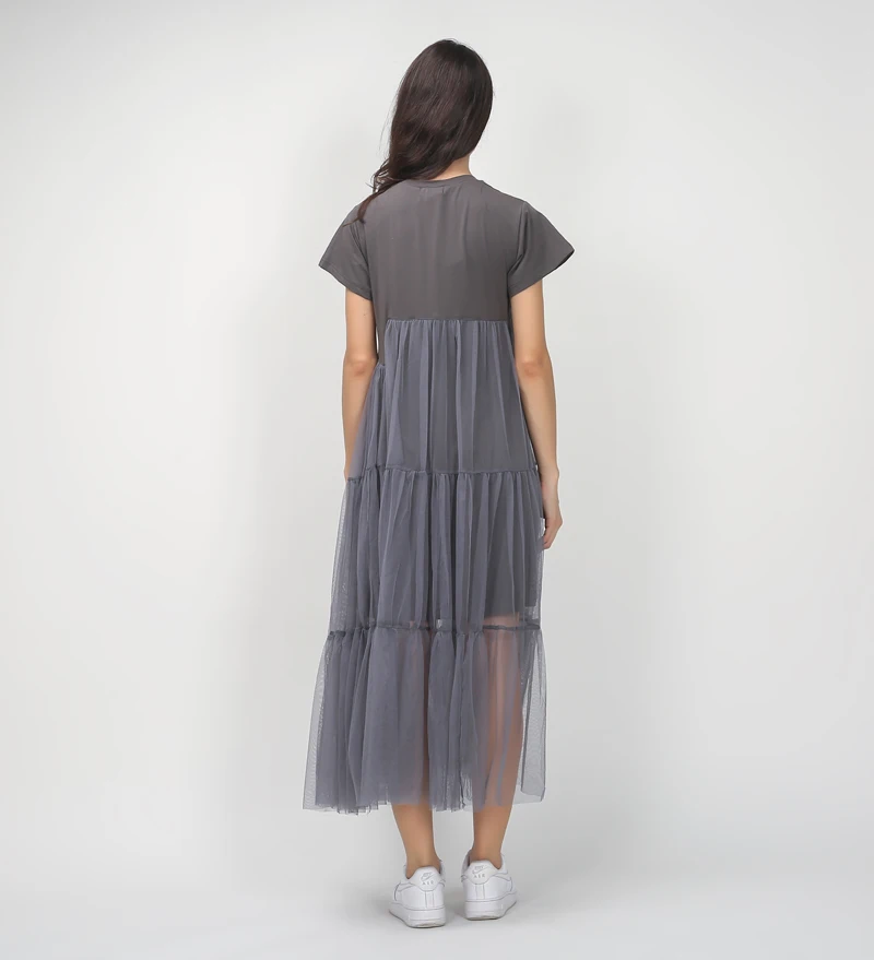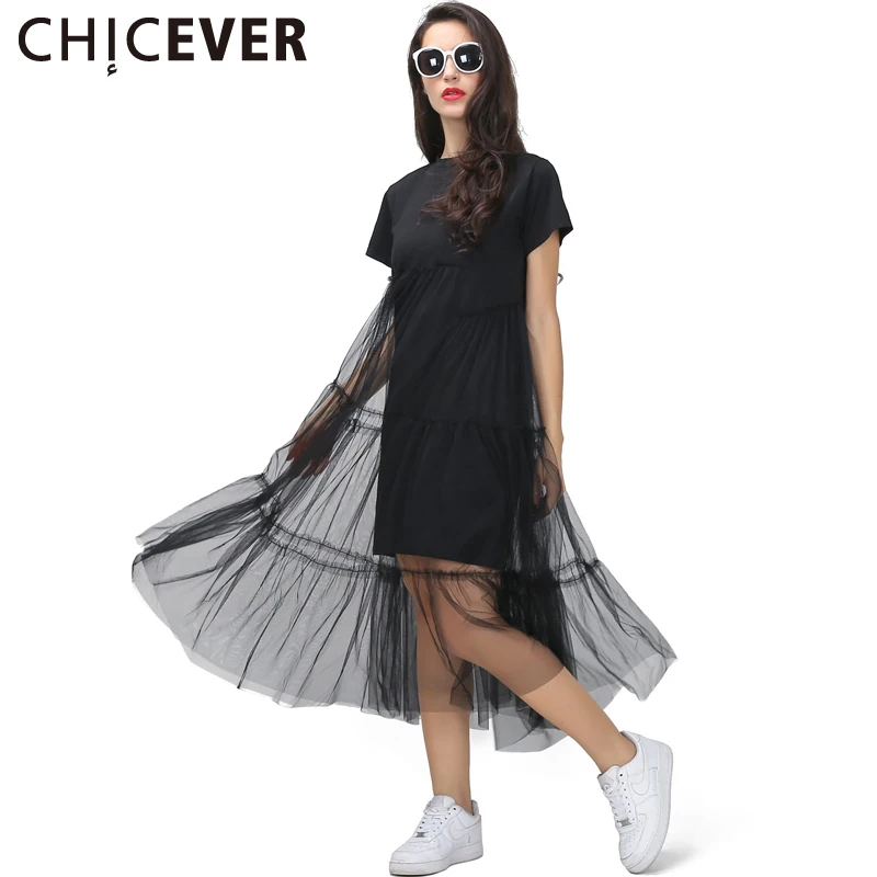 Special Offer [CHICEVER] verano coreano de talla grande empalme plisado malla camiseta Vestido Mujer negro Color gris ropa nueva moda Discount 30% Today!