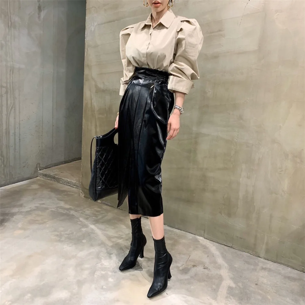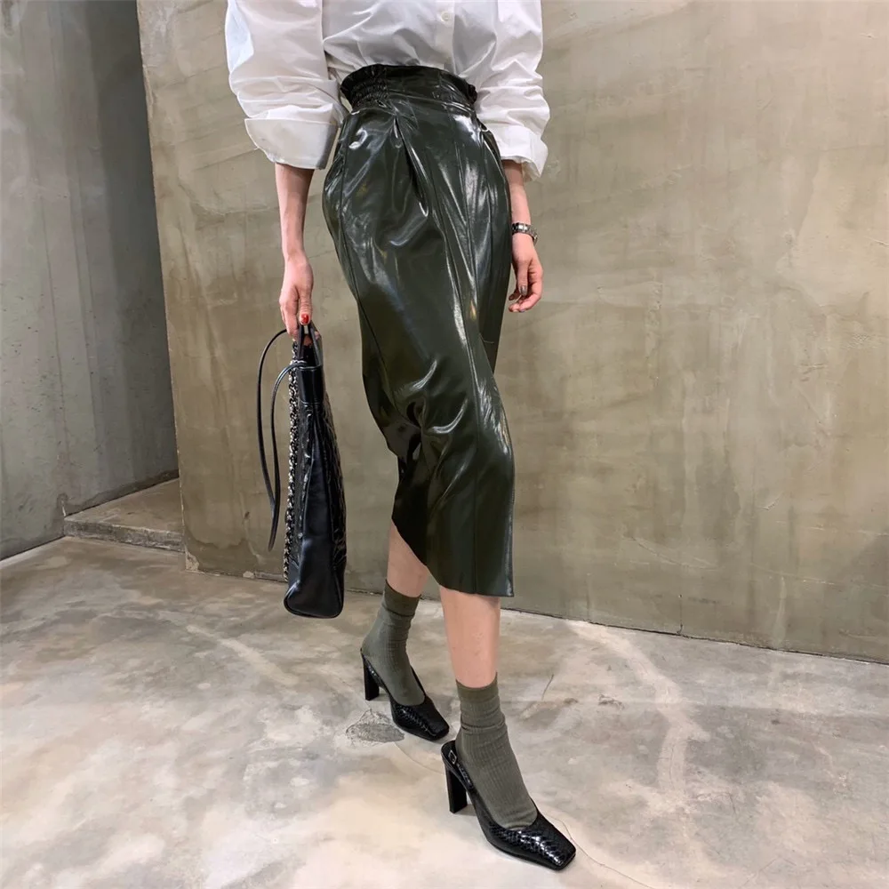 Special Offer HziriP negro sólido Sexy Formal PU cuero elegante Falda larga Mujer 2020 nuevo otoño primavera alta cintura Oficina señoras faldas lápiz Discount 30% Today!