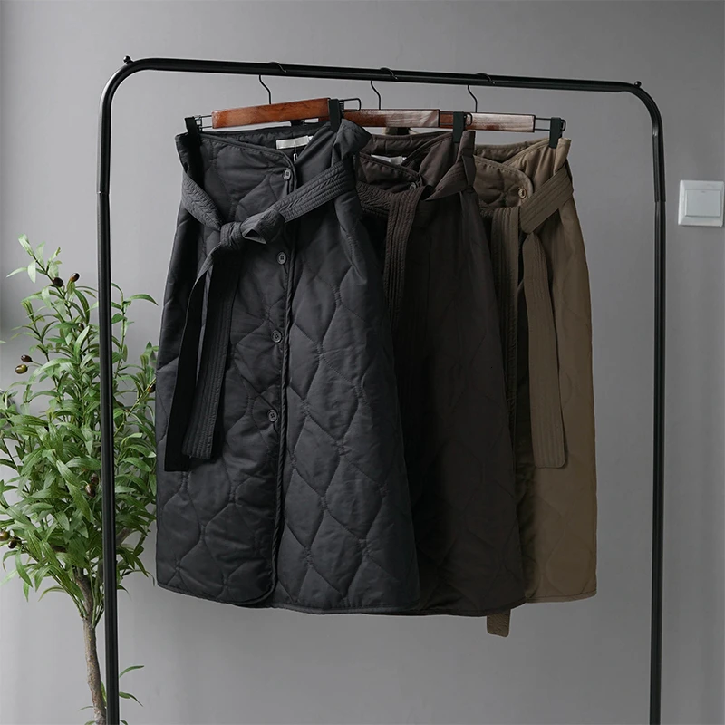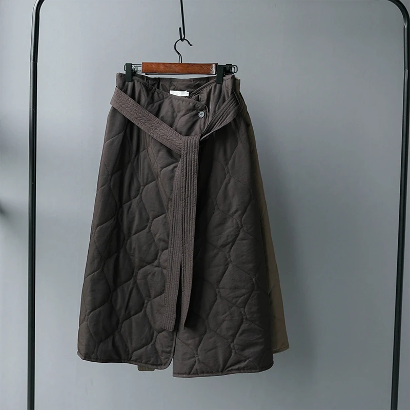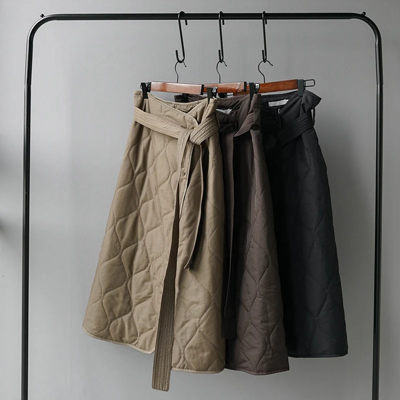Special Offer Invierno faldas Midi mujer negro acolchado de cintura alta falda Línea A Chalaza falda de paracaídas de un solo pecho Discount 30% Today!