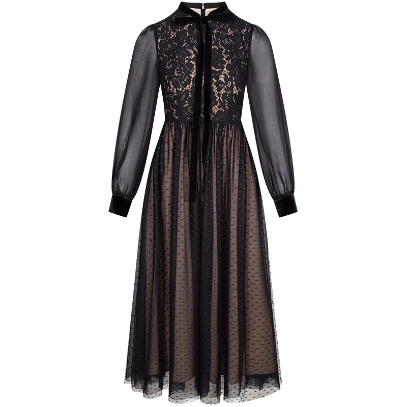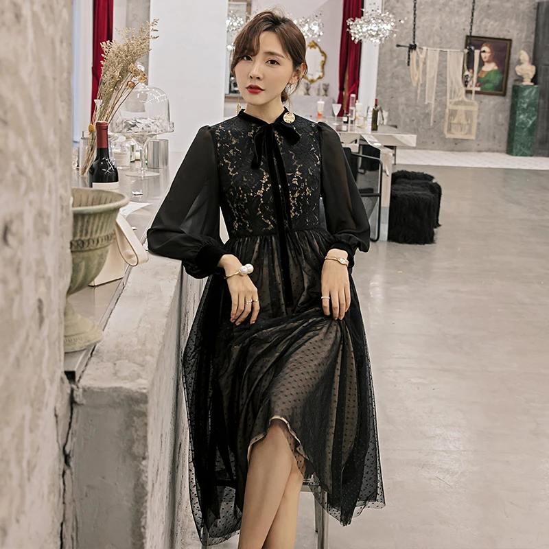 Special Offer YIGELILA otoño moda mujer vestido de encaje negro mangas completas imperio Delgado tobillo longitud elegante vestido para la cena fiesta 65126 Discount 35% Today!