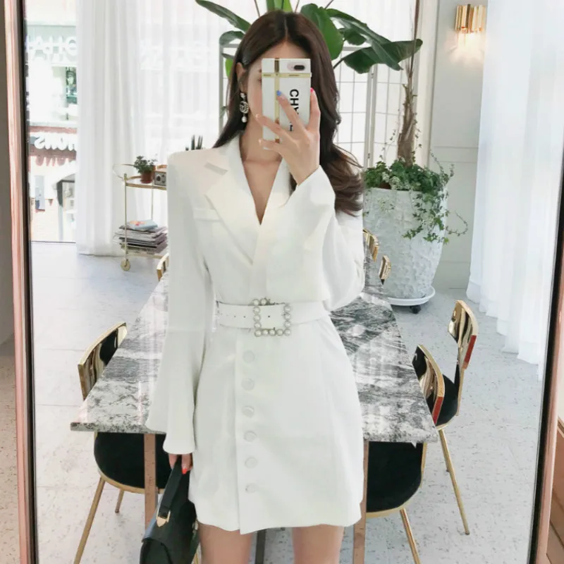 Special Offer Vestido recto de talla grande para mujer otoño negro manga completa acampanada traje de oficina túnica Vestido blanco Mini vestidos de mujer Vestido Discount 39% Today!