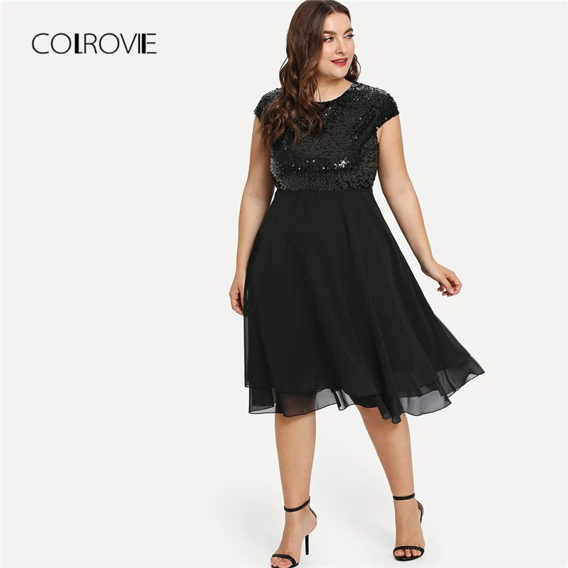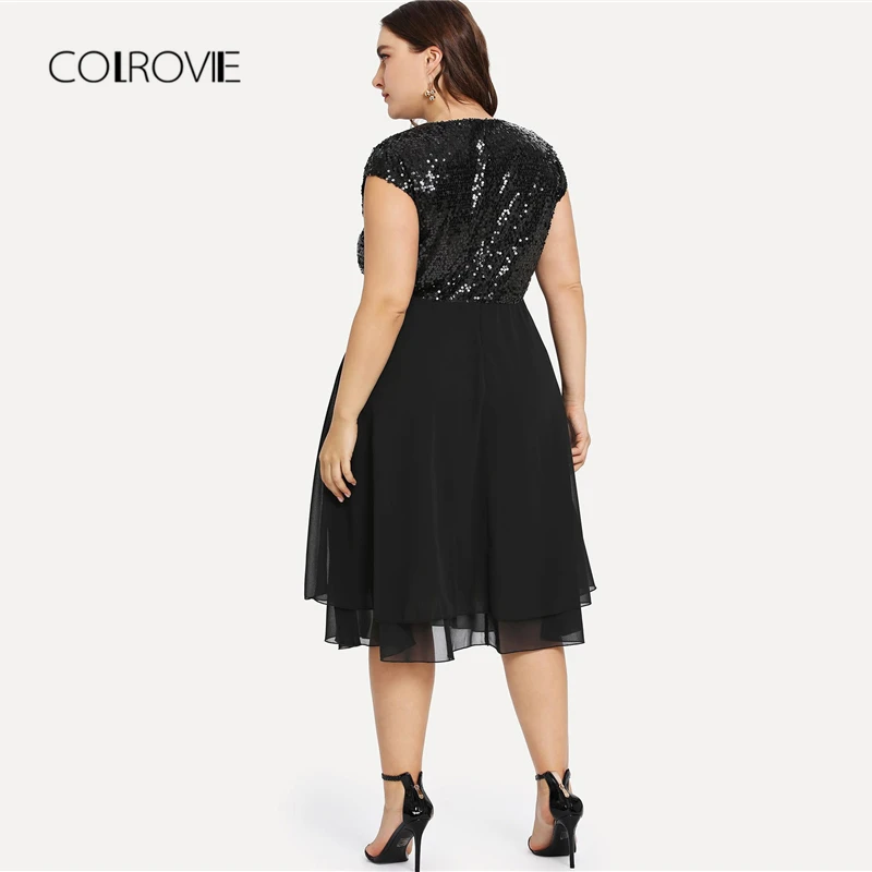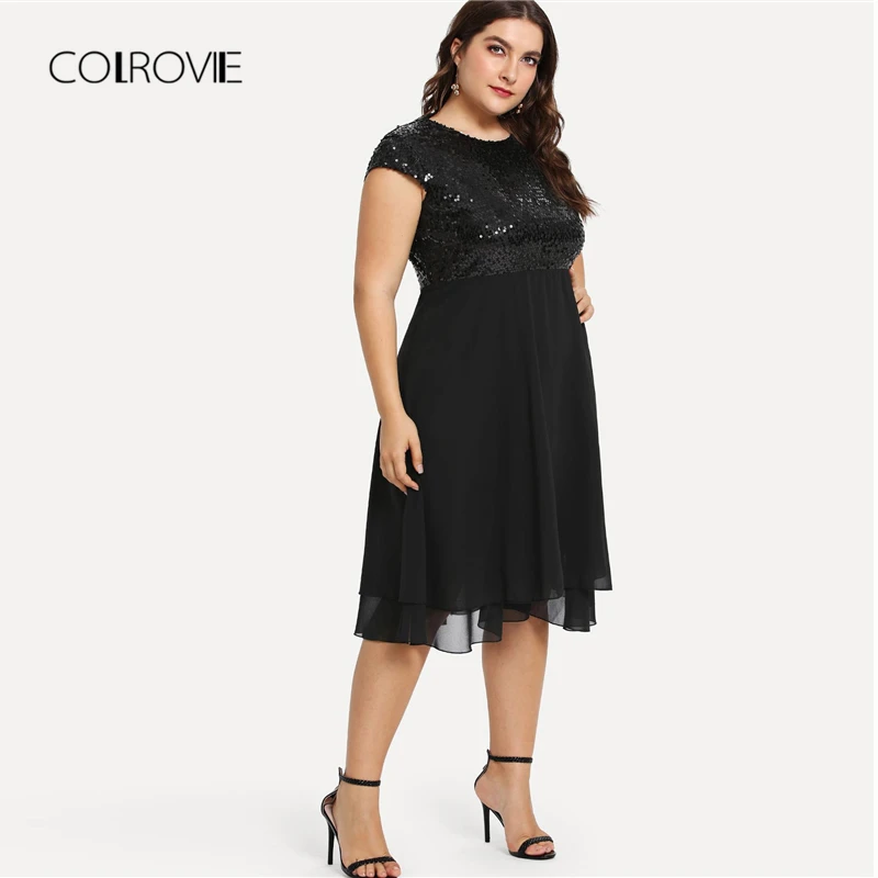 Special Offer Vestido Sexy de lentejuelas de cintura alta sólido negro de talla grande para mujer 2018 otoño Streetwear vestido de fiesta elegantes vestidos Midi Discount 40% Today!
