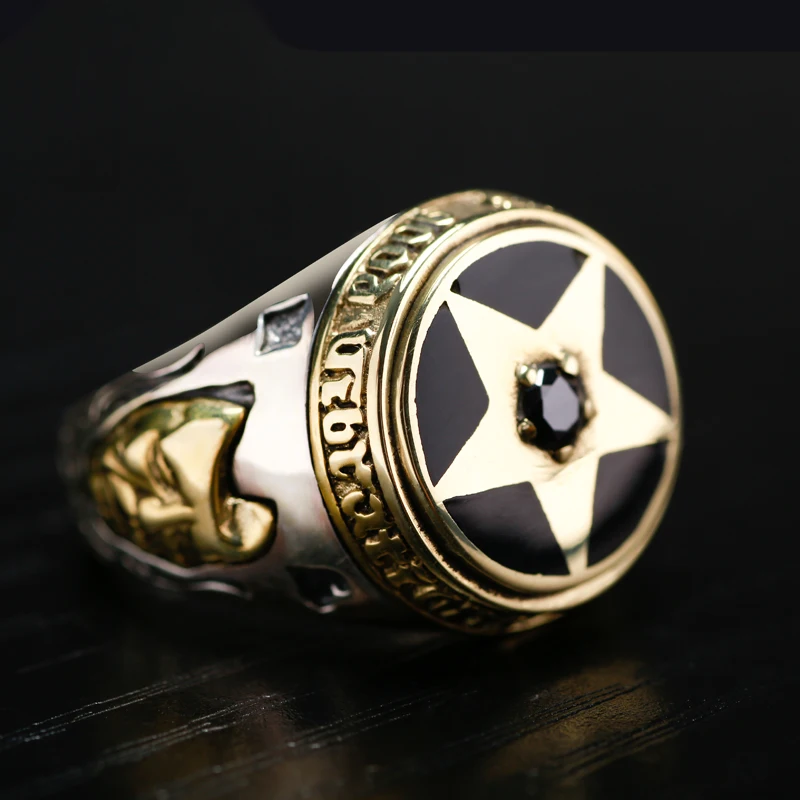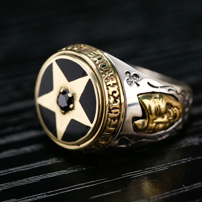 Special Offer ZABRA antigua orfebrería 925 ornamentos de plata Circón anillo de plata Tailandés de plata pentagram negro que restaura maneras antiguas de los hombres anillos Discount 40% Today!