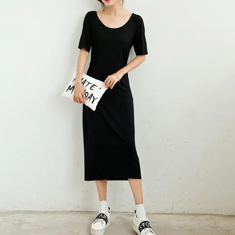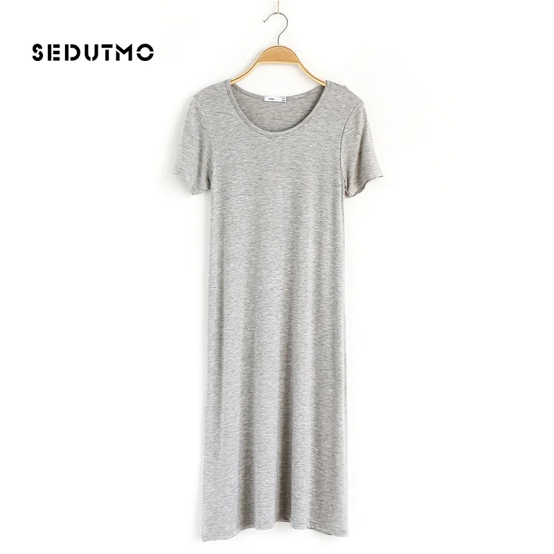 Special Offer SEDUTMO 2018 primavera camiseta vestido de mujer Midi verano Modal vestidos básicos de manga corta Sexy negro fiesta ajustado Vestido de playa ED081 Discount 45% Today!