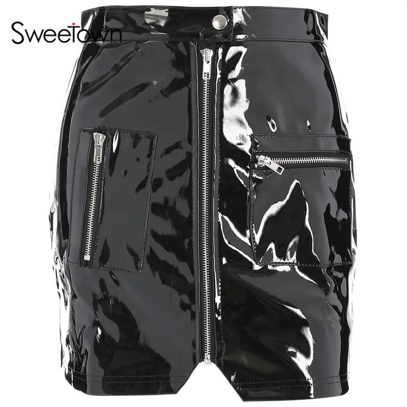 Special Offer Sweetown negro faldas de estilo coreano para mujer estilo de calle blanco una línea falda de verano 2018 púrpura de cintura alta Steampunk Falda corta Discount 49% Today!