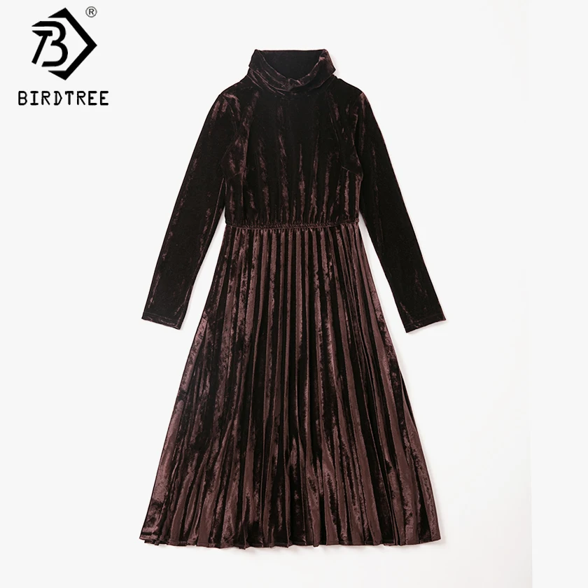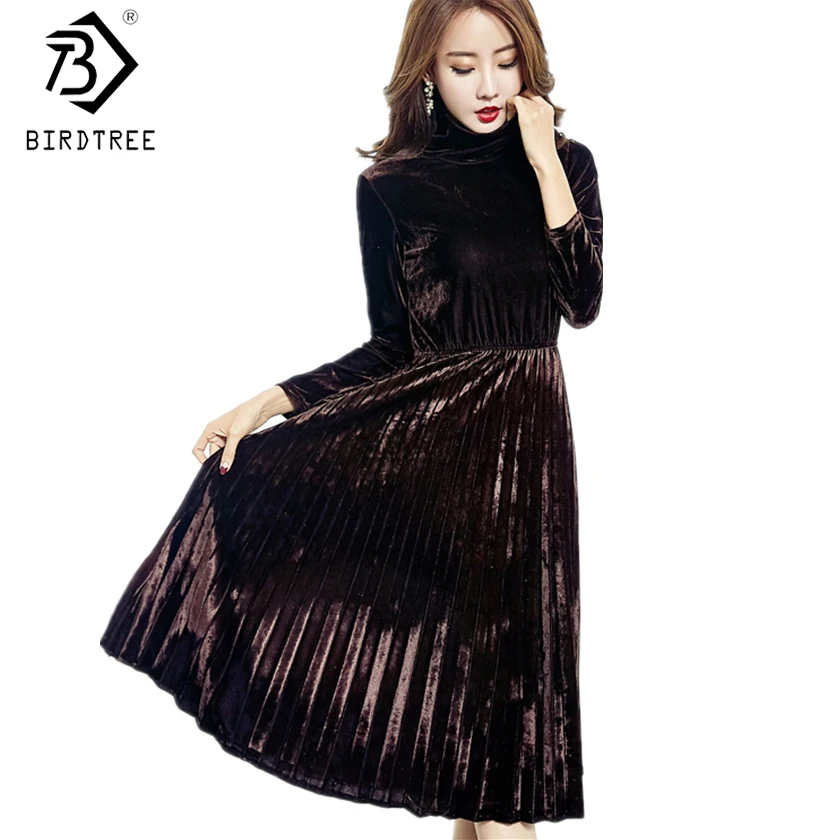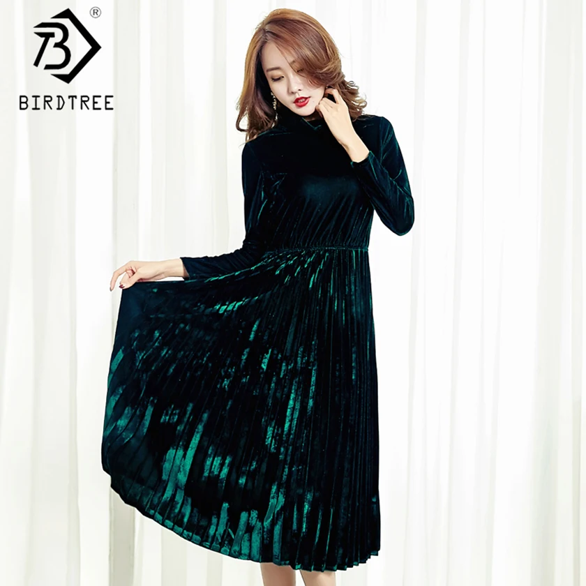 Special Offer Nuevos vestidos de terciopelo para mujeres 2020 primavera otoño Vintage cuello de tortuga manga larga verde negro plisado Velour vestidos de fiesta D7N414A Discount 5% Today!