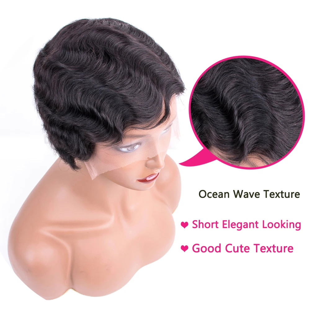 Special Offer Peluca corta Cabello humano en forma de L Frente de encaje Pelucas de cabello humano para mujeres negras Onda de dedo Brasileña Ocean Wave Remy Peluca 4 pulgadas Mslove Discount 50% Today!