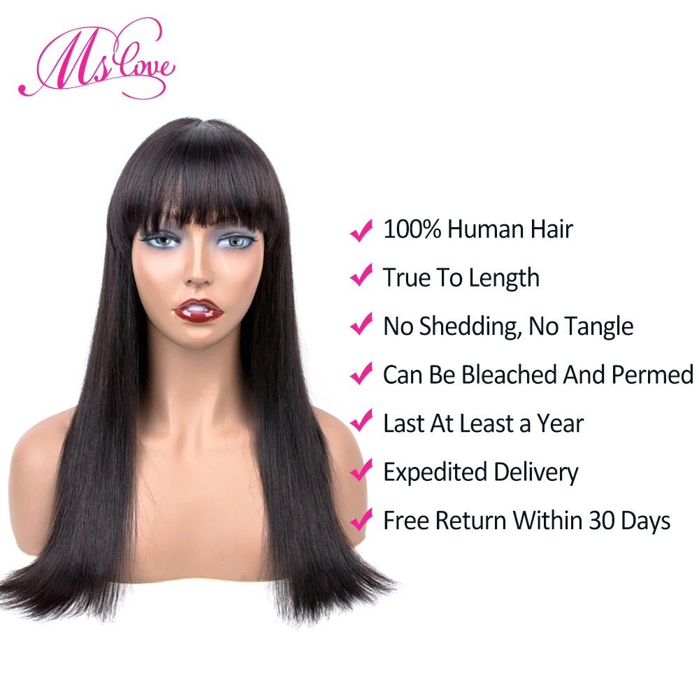 Special Offer Pelucas de pelo humano Peluca de Bob Peluca de pelo humano corto con flequillo para mujeres negras Color Natural Peluca de flequillo brasileño recto MS amor Discount 53% Today!