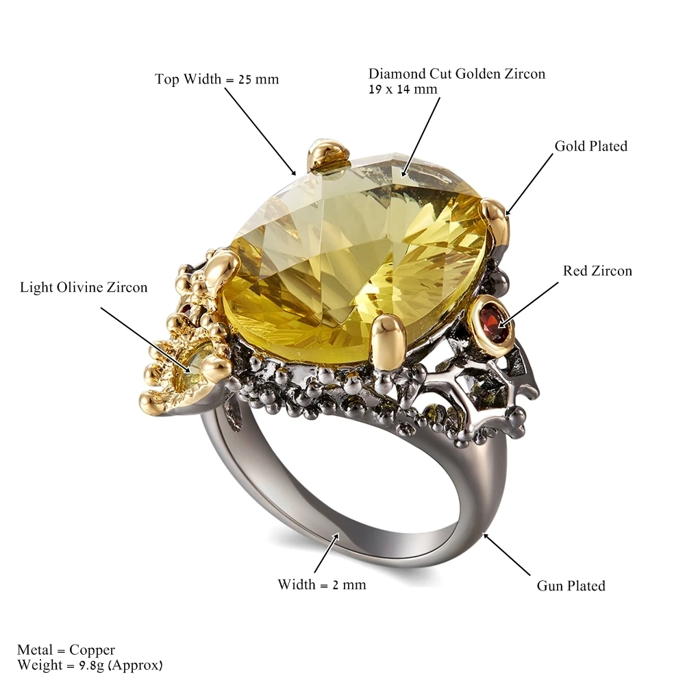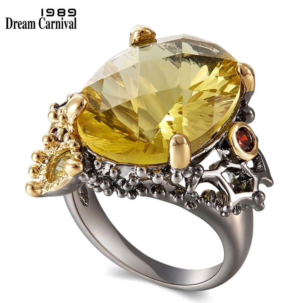 Special Offer DreamCarnival 1989 anillos de oro negro Vintage para mujeres gran Color dorado Radian cortar la zirconia boda fiesta joyería de moda WA11689 Discount 55% Today!