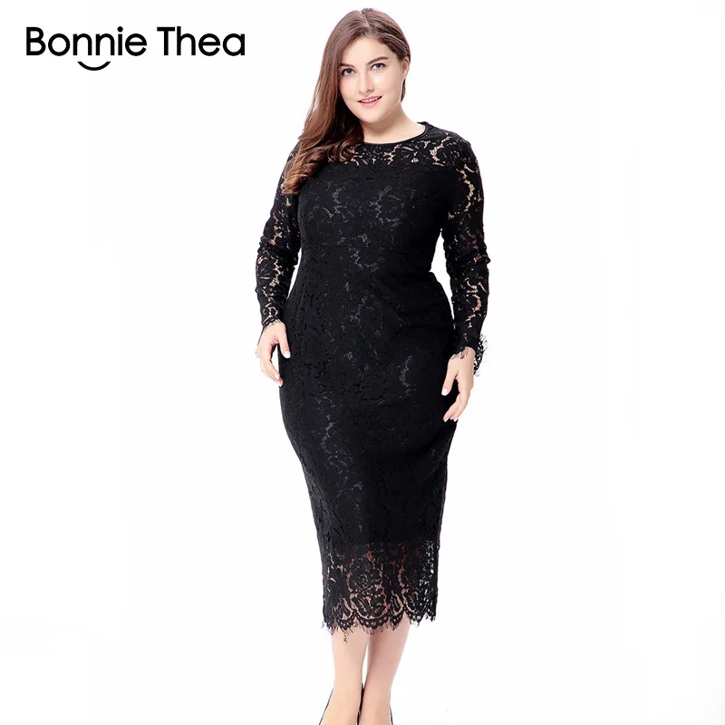 Special Offer Mujeres negro Blanco rojo vestido de encaje de talla grande otoño elegante 6XL tamaño grande ajustado Sexy midi vestido de fiesta vestidos de gran tamaño vestidos Discount 0% Today!