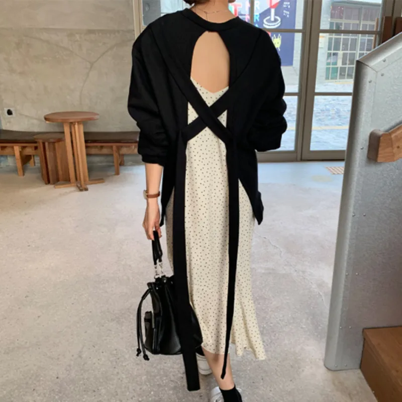 Special Offer SHENGPALAE 2020 nueva moda Otoño Cruz Correa espalda descubierta mujeres sólido negro Delgado Casual Tide Streetwear camiseta femenina A103 Discount 15% Today!