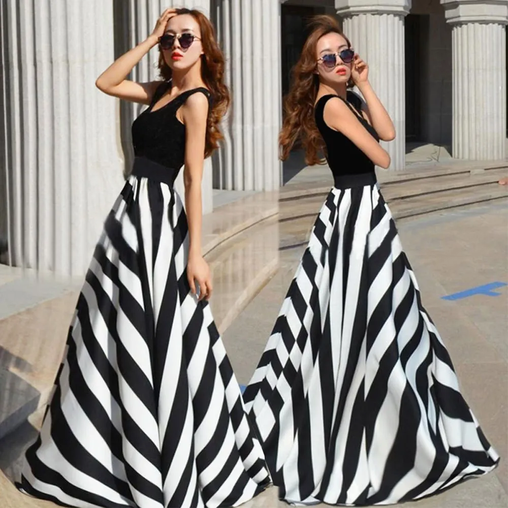 Special Offer Vestido A rayas para mujer, Maxi vestido Casual de primavera, negro, cuello redondo, manga larga, vestido de fiesta de línea A Discount 15% Today!