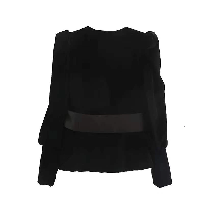 Special Offer Blusas de kimono de terciopelo negro para mujer blusas de cuello en V profundo arco camisa a la cintura de manga larga para mujer Discount 24% Today!