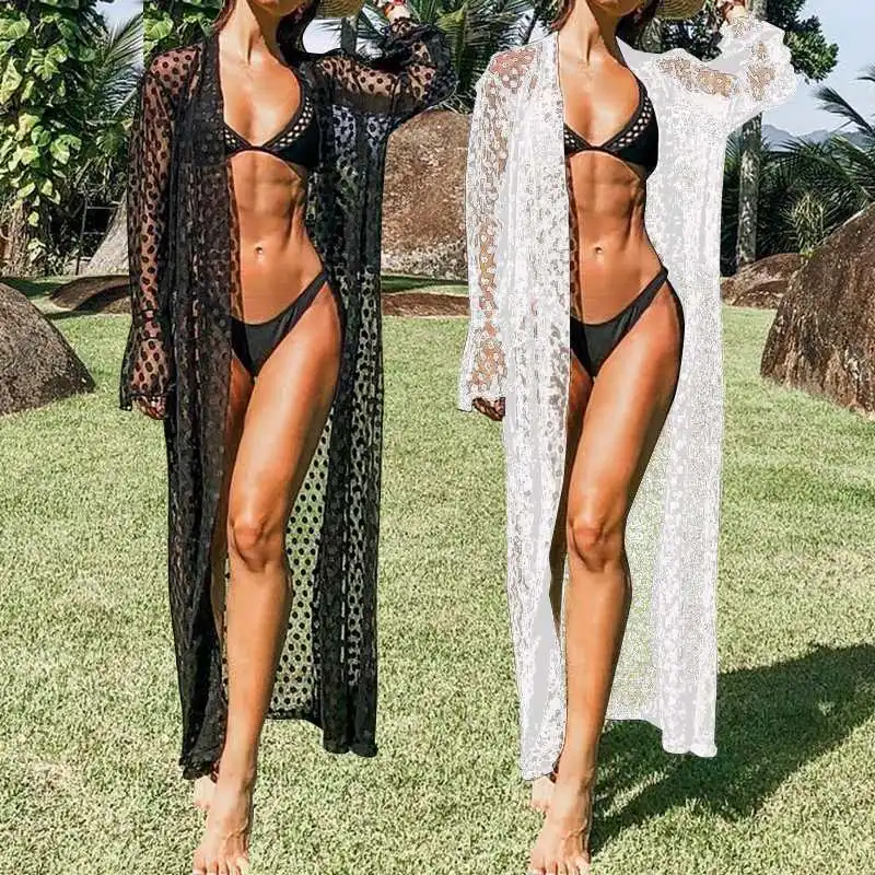 Special Offer Mujer encaje Kimono Cardigan Celmia 2019 verano playa cubrir tapas largas Casual negro transparente Ploka Dot imprimir camisas Sexy Blusas 5XL Discount 30% Today!