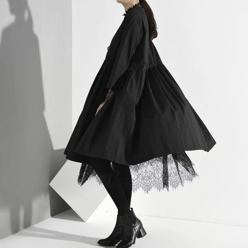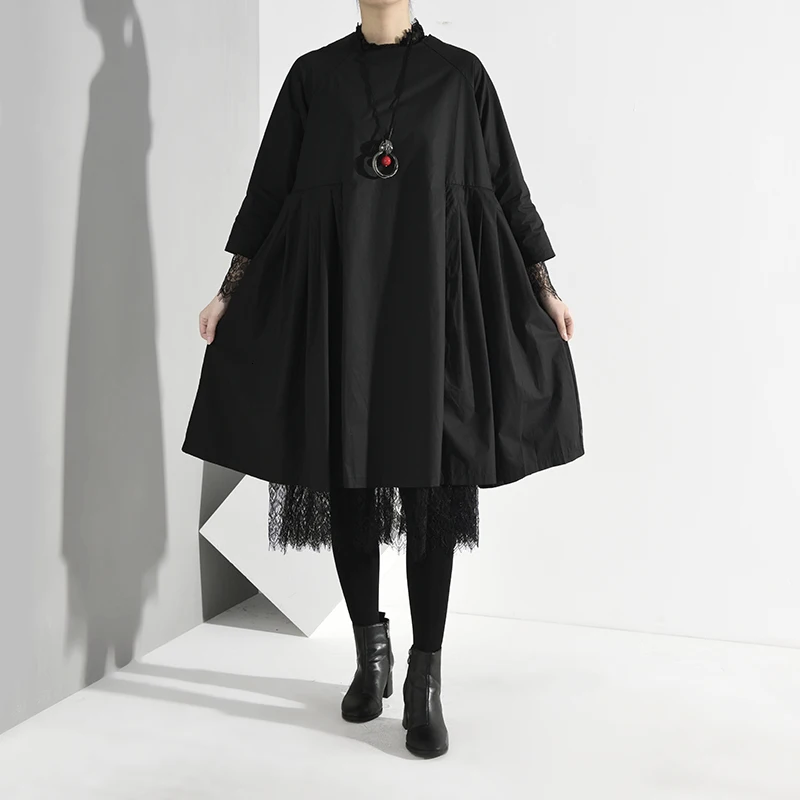 Special Offer [EAM] mujeres negro plisado malla dividida vestido nuevo cuello redondo manga larga suelta moda marea primavera otoño 2020 Y13101 Discount 35% Today!